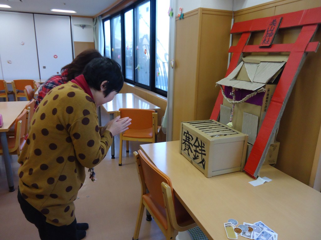 行事・行事イベント・新年会 2020年★新年会 投稿者: yamayuri380 投稿日: 2020年1月28日2021年12月3日 新年会の様子です。出張寿司屋さん登場で握り寿司を食べました。 職員手作りの賽銭箱に願いを込めました。 近隣の八王子諏訪神社まで初詣に行きました。 お正月遊びは福笑いやカルタを楽しみました。 共有: クリックして X で共有 (新しいウィンドウで開きます) X Facebook で共有するにはクリックしてください (新しいウィンドウで開きます) Facebook いいね 読み込み中… 関連