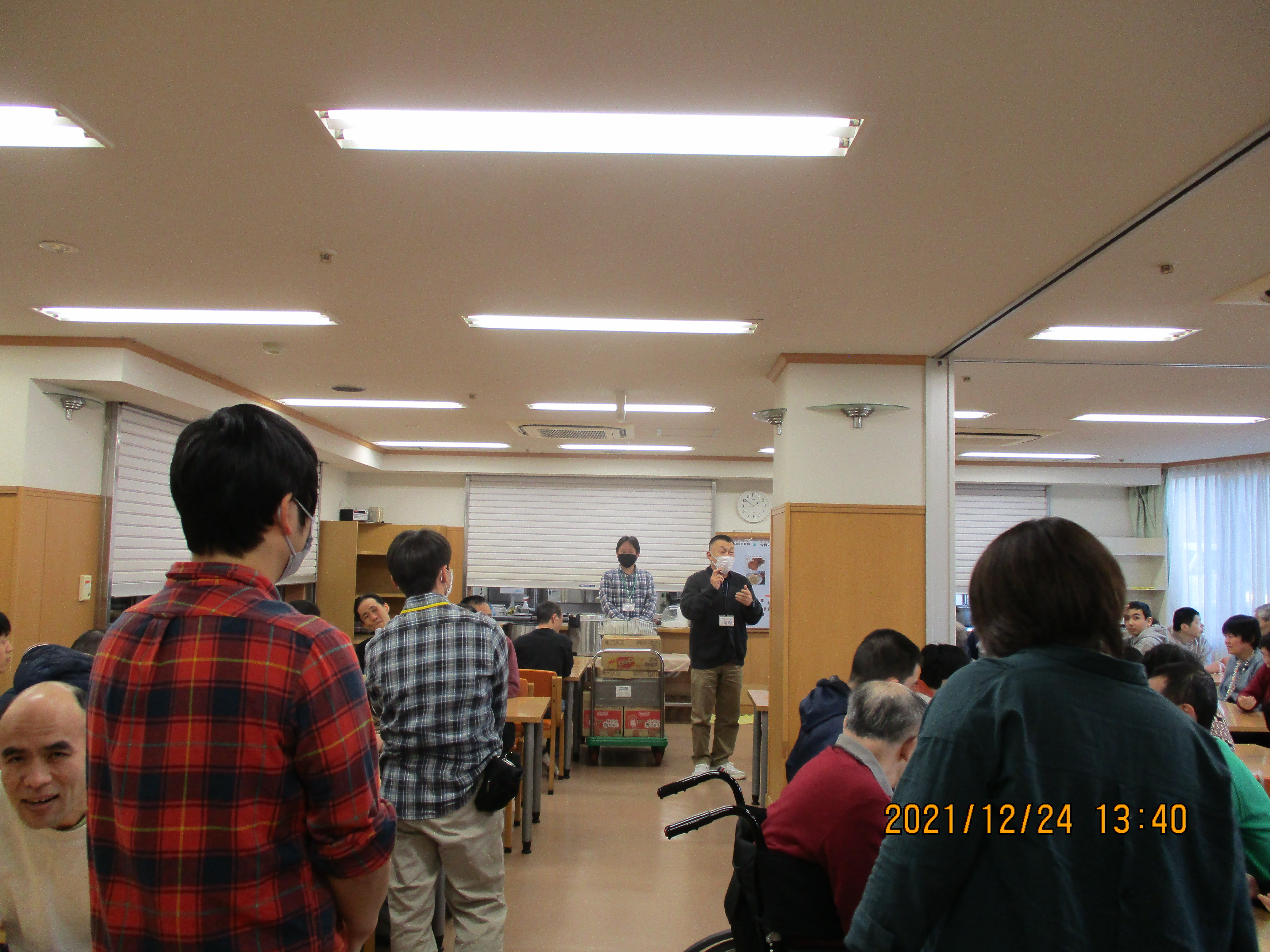 行事・行事イベント 2021★忘年会 投稿者: yamayuri380 投稿日: 2021年12月24日2022年1月8日 令和3年12月24日、大掃除の後に忘年会を行いました。午前中の大掃除は利用者さんも頑張りました。乾杯のあとにエクレア・シュークリームで、ささやかな忘年会を楽しみました。 2021年の仕事納めです。年末年始はゆっくり過ごしたいと思います。 共有: クリックして X で共有 (新しいウィンドウで開きます) X Facebook で共有するにはクリックしてください (新しいウィンドウで開きます) Facebook いいね 読み込み中… 関連