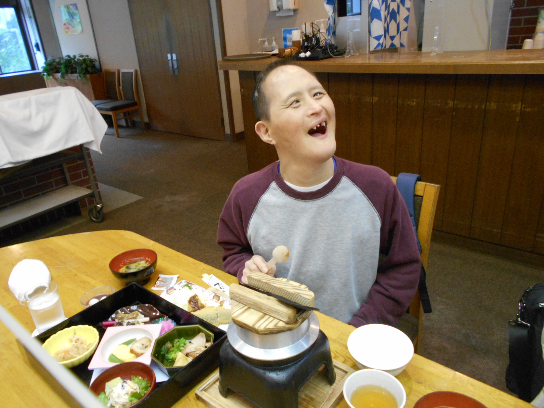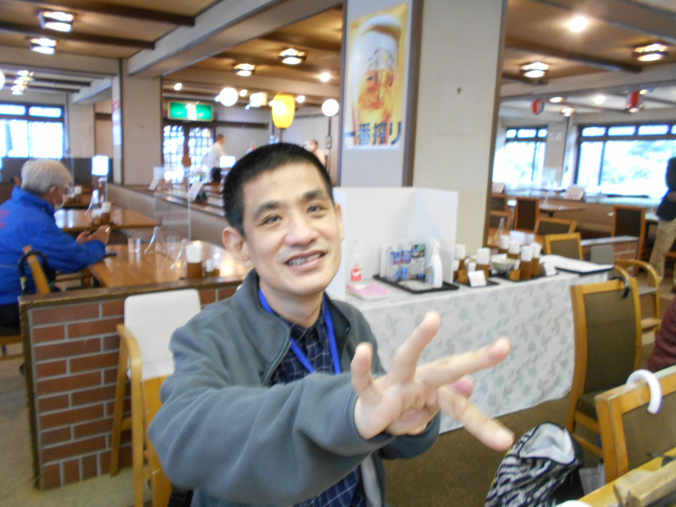 行事イベント・旅行 2022年★伊豆方面一泊旅行 投稿者: yamayuri380 投稿日: 2022年10月13日2022年12月19日 10月6日、7日に伊豆方面へ一泊旅行に行きました。今回はコロナ禍ということもあり、男性利用者10名での旅行となりました。久しぶりの観光バスでの一泊旅行に皆さん笑顔で出発。一日目は箱根園で釜飯の昼食を食べて観光し、伊豆のホテルラヴィ川原に宿泊しました。ホテルでは貸切風呂を満喫し、宴会ではカラオケも楽しみました。二日目は道の駅ゲートウェイ函南で観光し、御殿場高原ビールでハンバーグの昼食を楽しみました。 共有: クリックして X で共有 (新しいウィンドウで開きます) X Facebook で共有するにはクリックしてください (新しいウィンドウで開きます) Facebook いいね 読み込み中… 関連