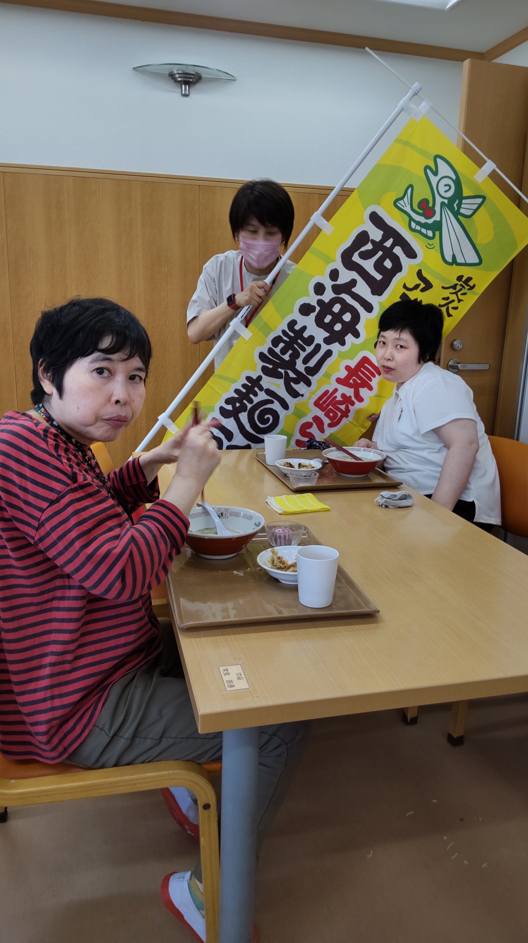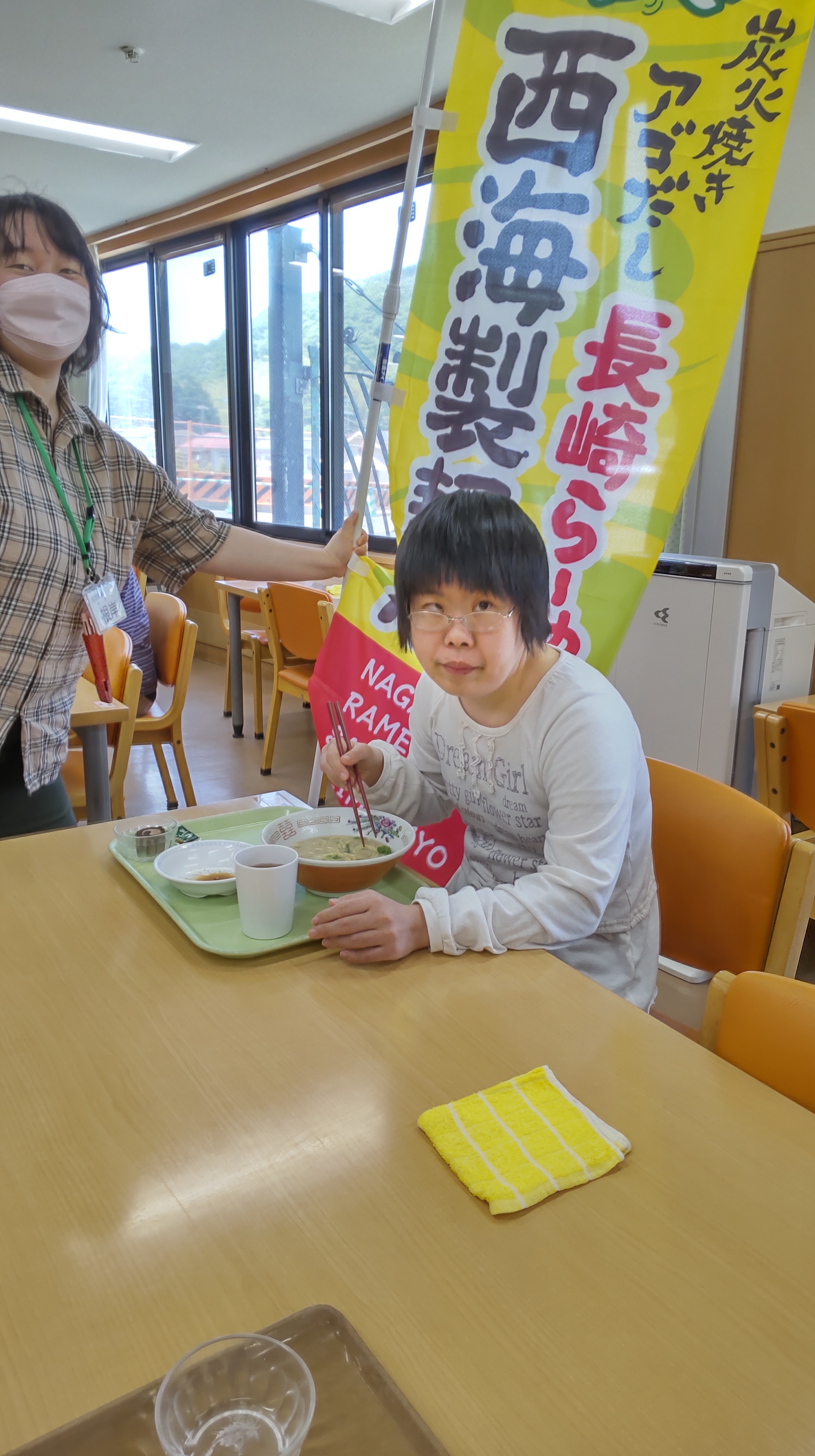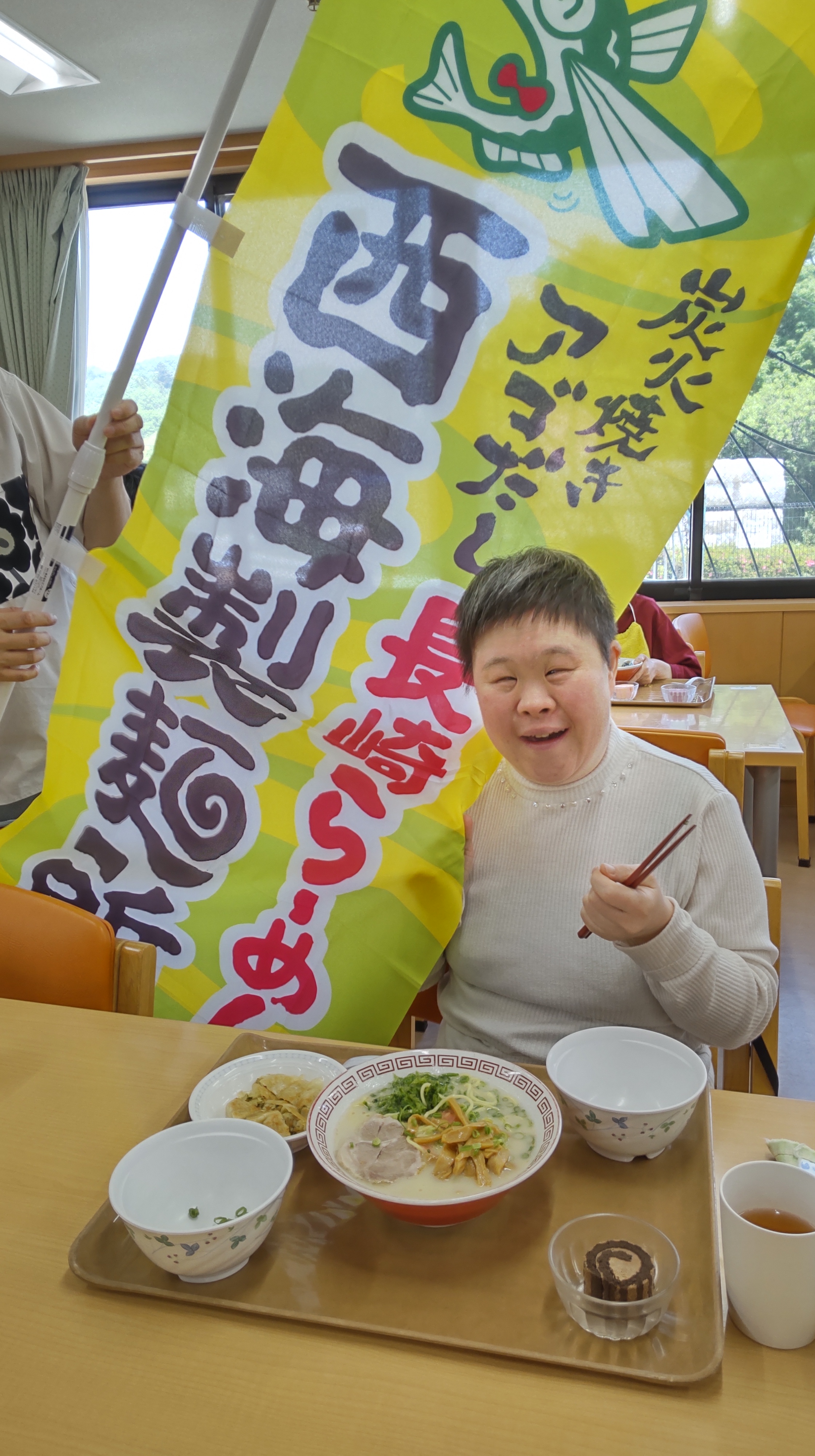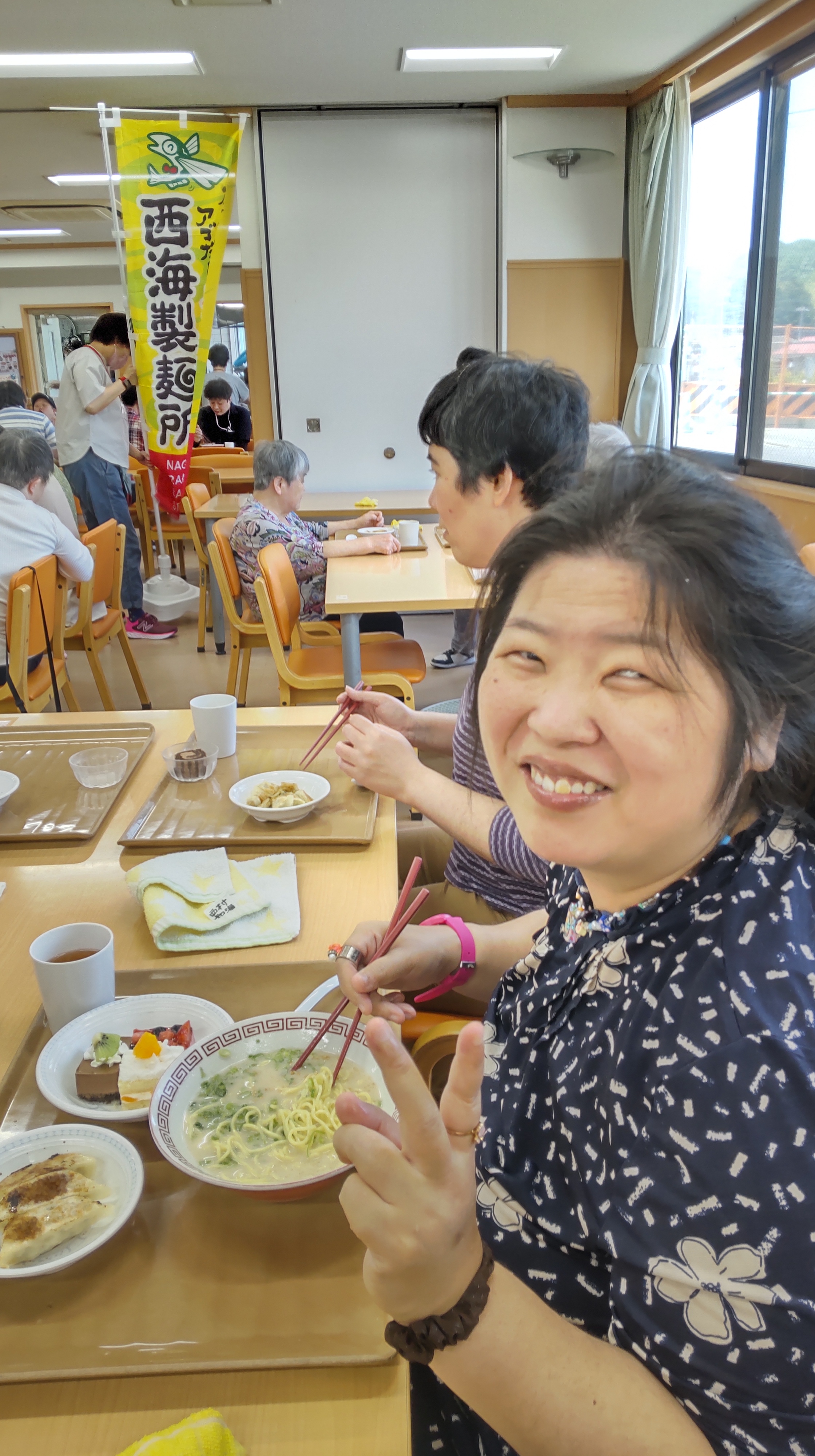 イベント・行事・行事イベント・新年会 スペシャルな昼食 投稿者: yamayuri380 投稿日: 2023年6月2日2023年6月2日 5月18日、昨年に続き炭火焼きアゴだし長崎ラーメン「西海製麺所」が来園!ラーメンと餃子を食べました。お店の味そのままで本当に美味しかった!5月30日には頂き物のメロンが昼食時に出ました。大きなカットのメロンで思う存分食べることが出来ました。甘くて美味しかったです。 共有: クリックして X で共有 (新しいウィンドウで開きます) X Facebook で共有するにはクリックしてください (新しいウィンドウで開きます) Facebook いいね 読み込み中… 関連