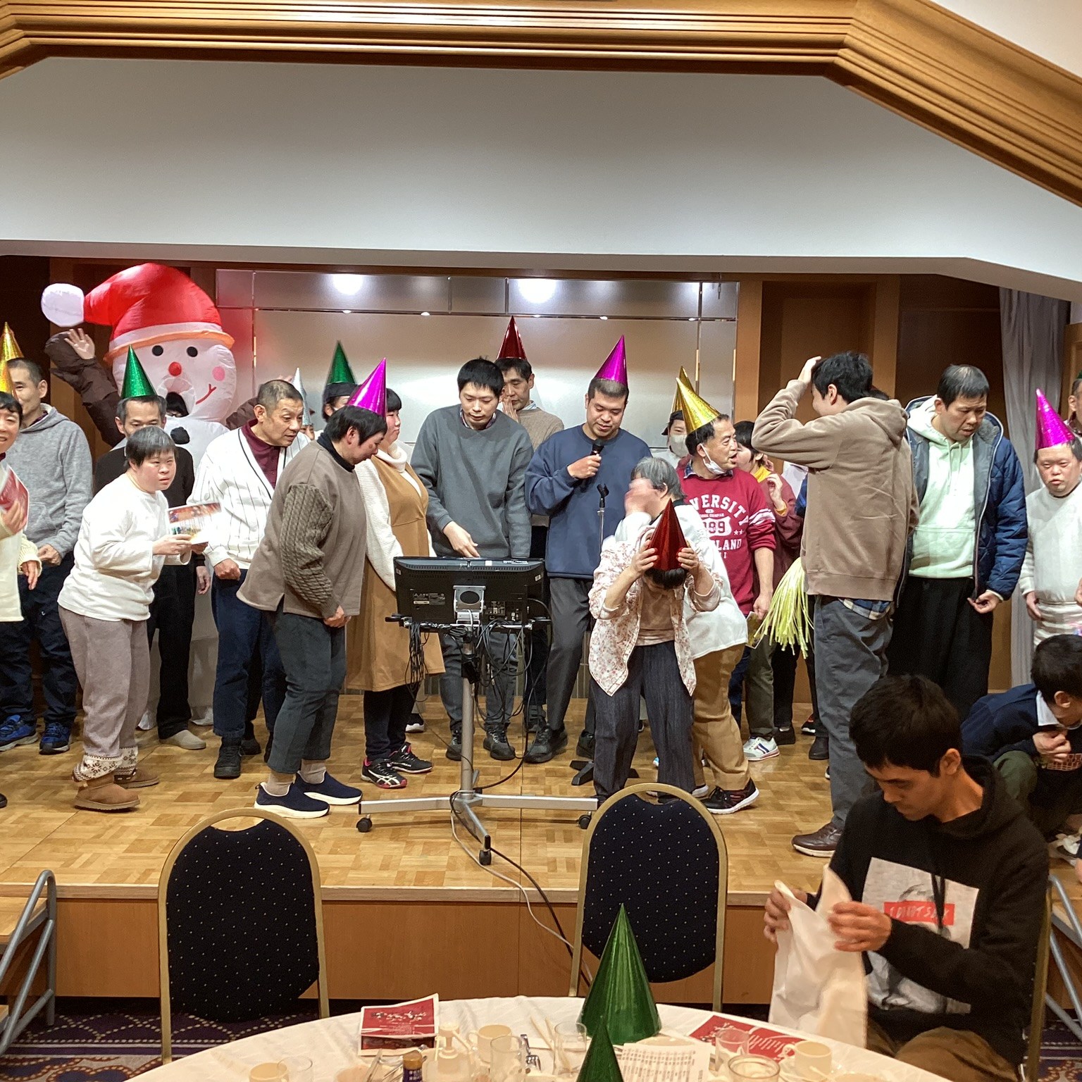 クリスマス・行事・行事イベント・新年会 2023年★クリスマス会 投稿者: yamayuri380 投稿日: 2024年1月11日 12月22日、八王子エルシィでクリスマス会を開催しました。食事にカラオケ、みなさん笑顔で楽しんでいました。今年は乾杯の挨拶・終わりの挨拶も利用者さんが担当し、しっかりと盛り上げてくれました。 共有: クリックして X で共有 (新しいウィンドウで開きます) X Facebook で共有するにはクリックしてください (新しいウィンドウで開きます) Facebook いいね 読み込み中… 関連