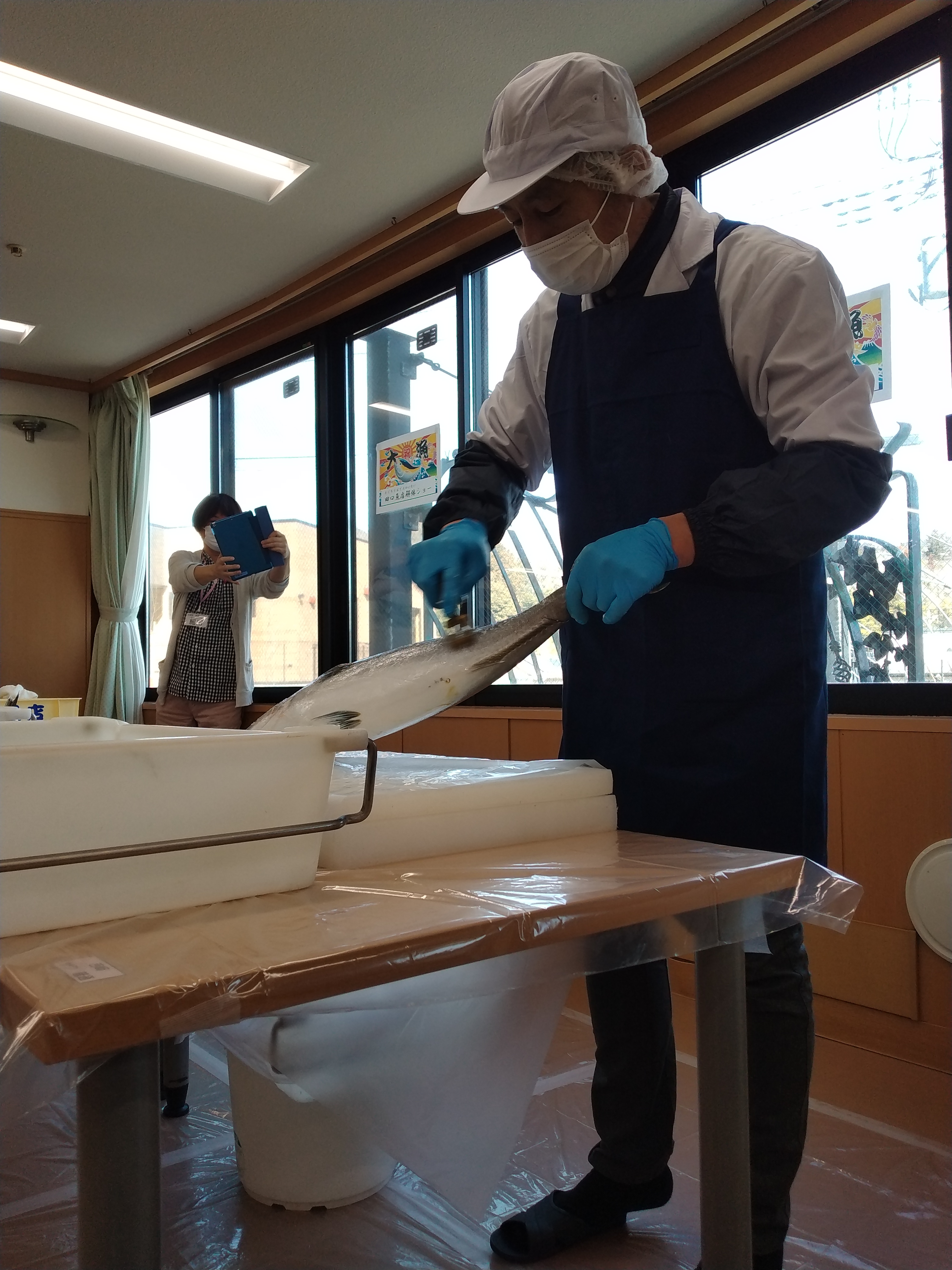 イベント お魚解体ショー♬ 投稿者: yamayuri380 投稿日: 2024年3月7日2024年3月7日 2月28日に田口魚店さんによるお魚解体ショーが行われました。 ぶりとたらの解体に、みなさん大盛り上がり♪ テキパキとさばく魚屋さんの手つきを真剣に見入る様子もありました。 さばかれたお魚はその日の給食で塩焼きに、その他お刺身の盛り合わせも振舞われ、みなさん美味しそうに食べていました。 共有: クリックして X で共有 (新しいウィンドウで開きます) X Facebook で共有するにはクリックしてください (新しいウィンドウで開きます) Facebook いいね 読み込み中… 関連