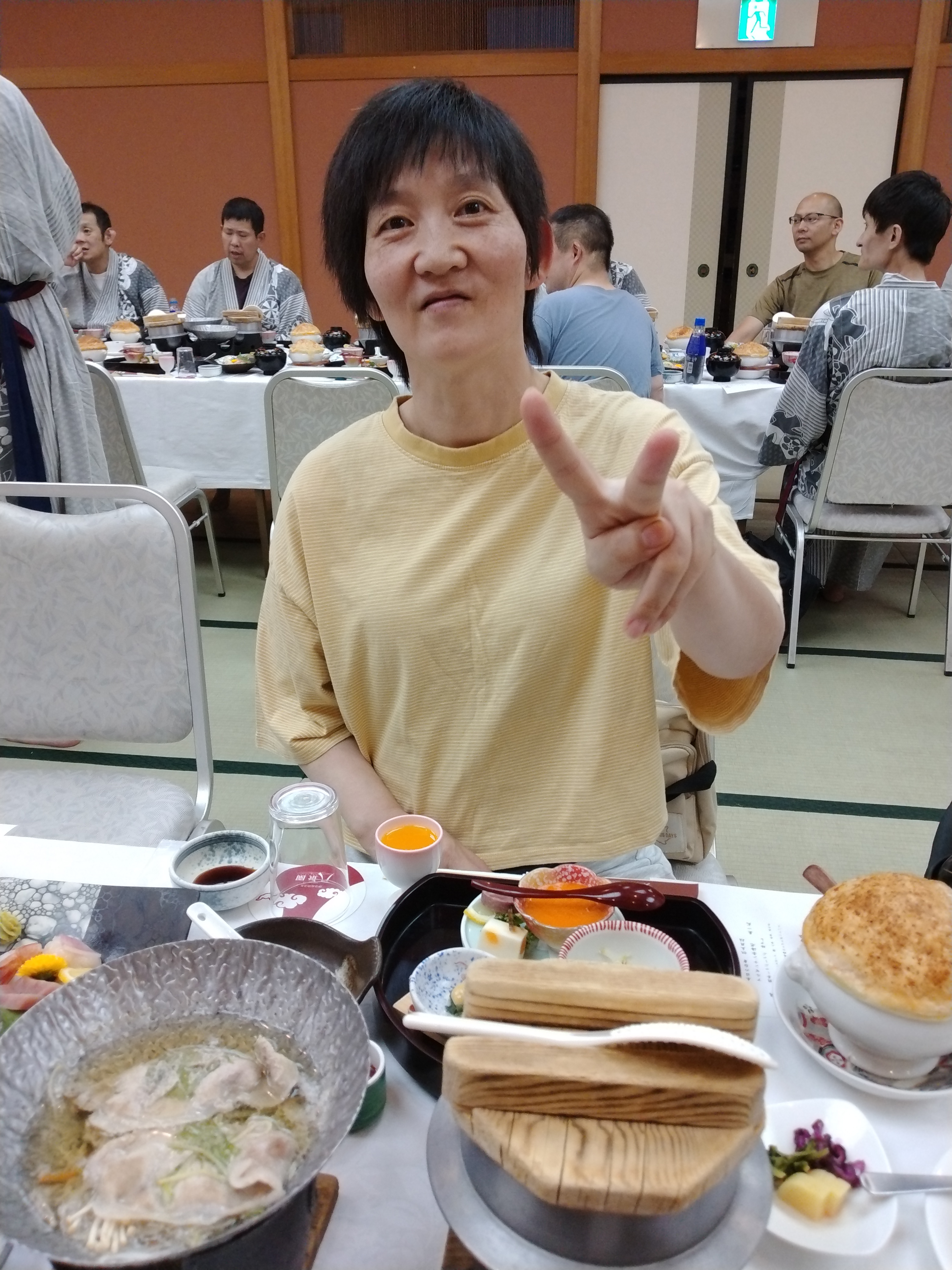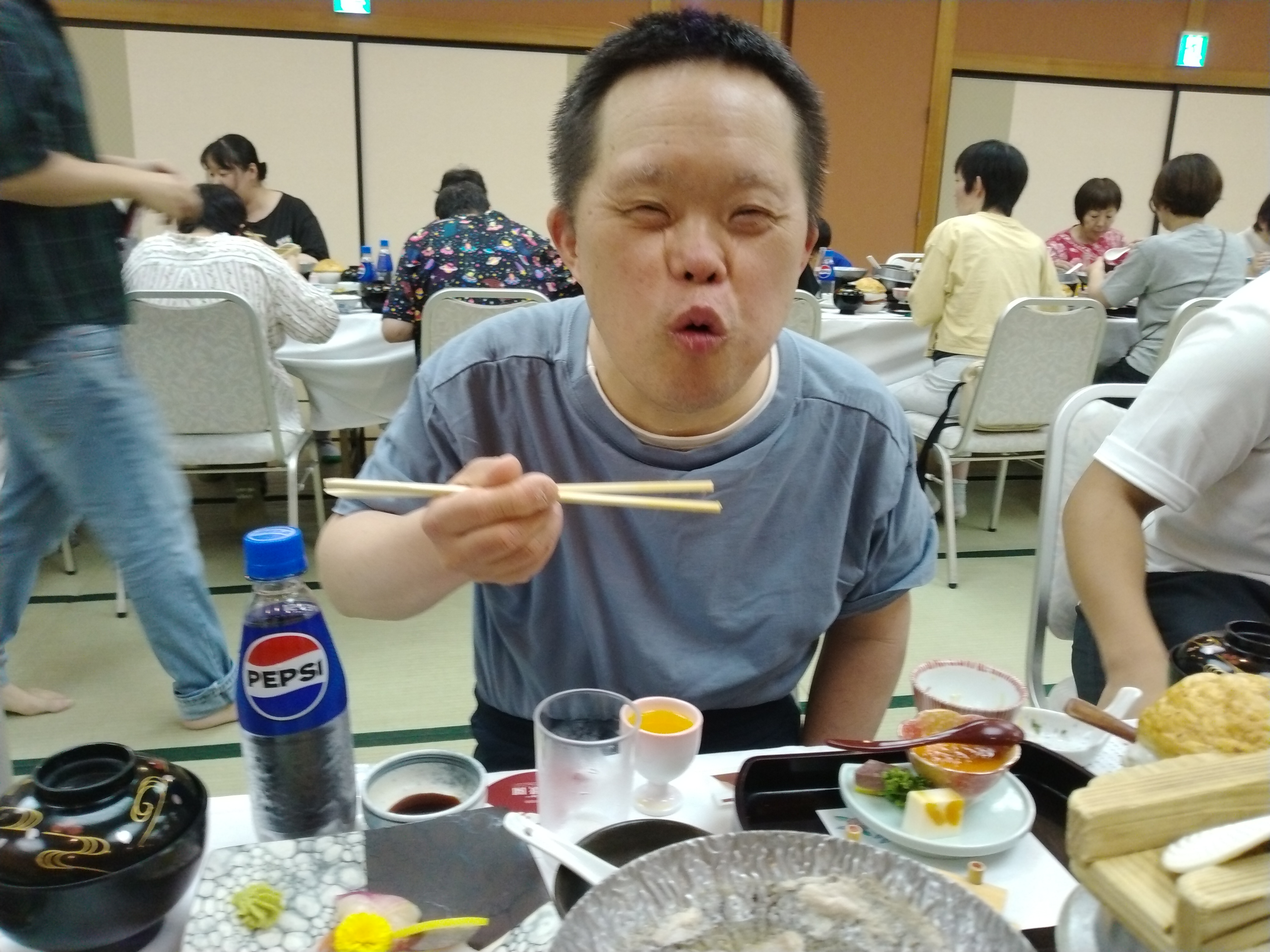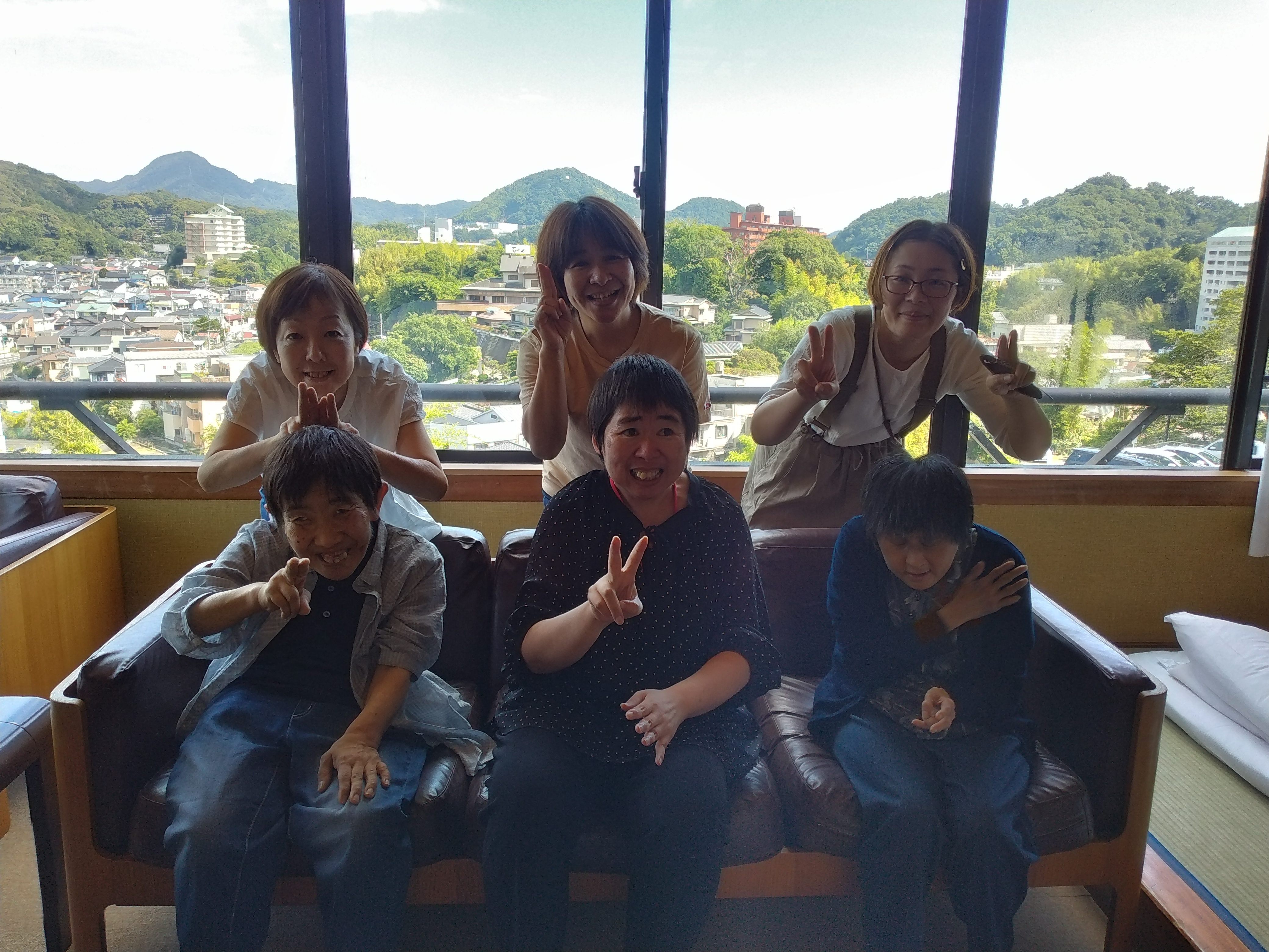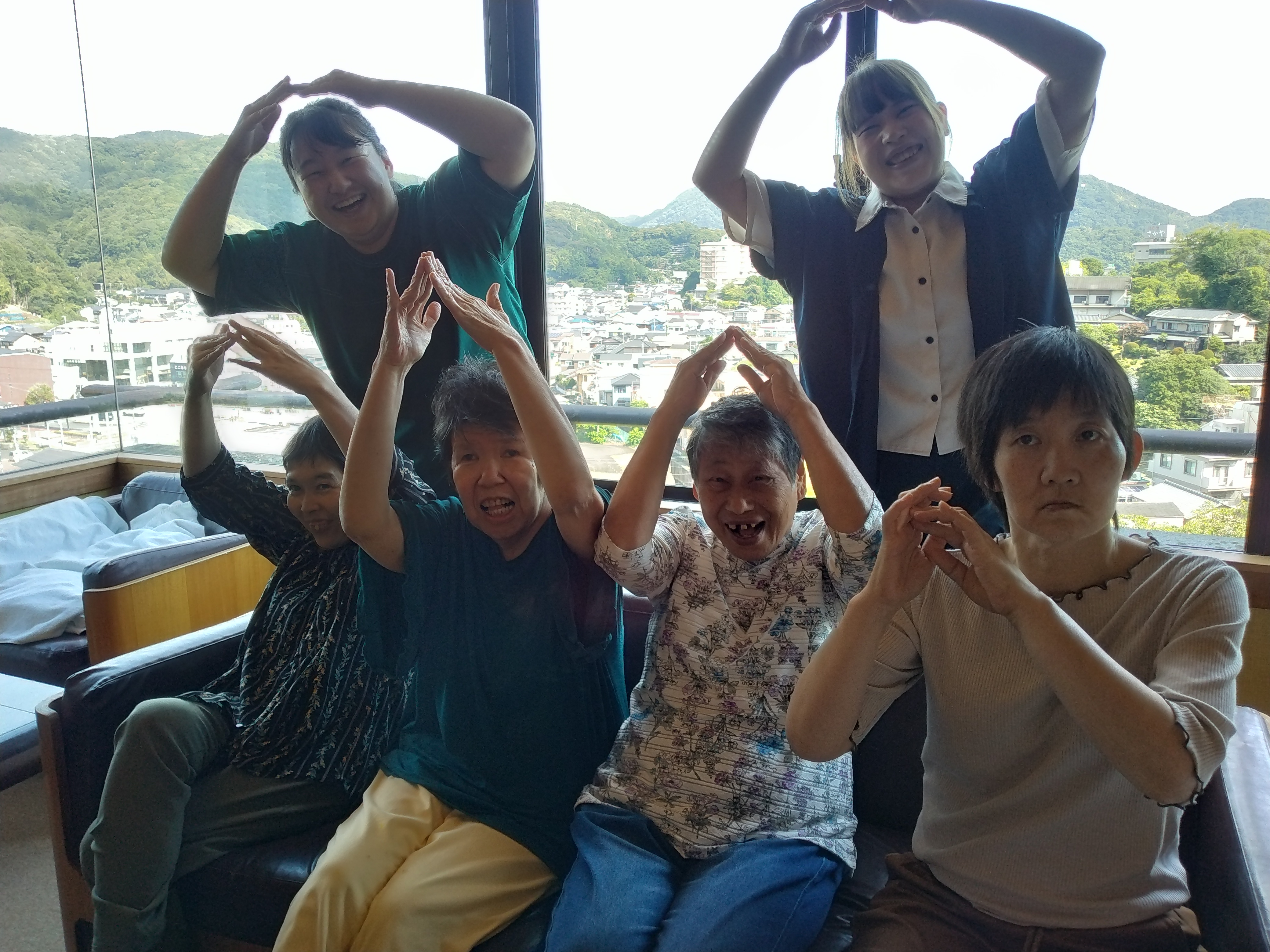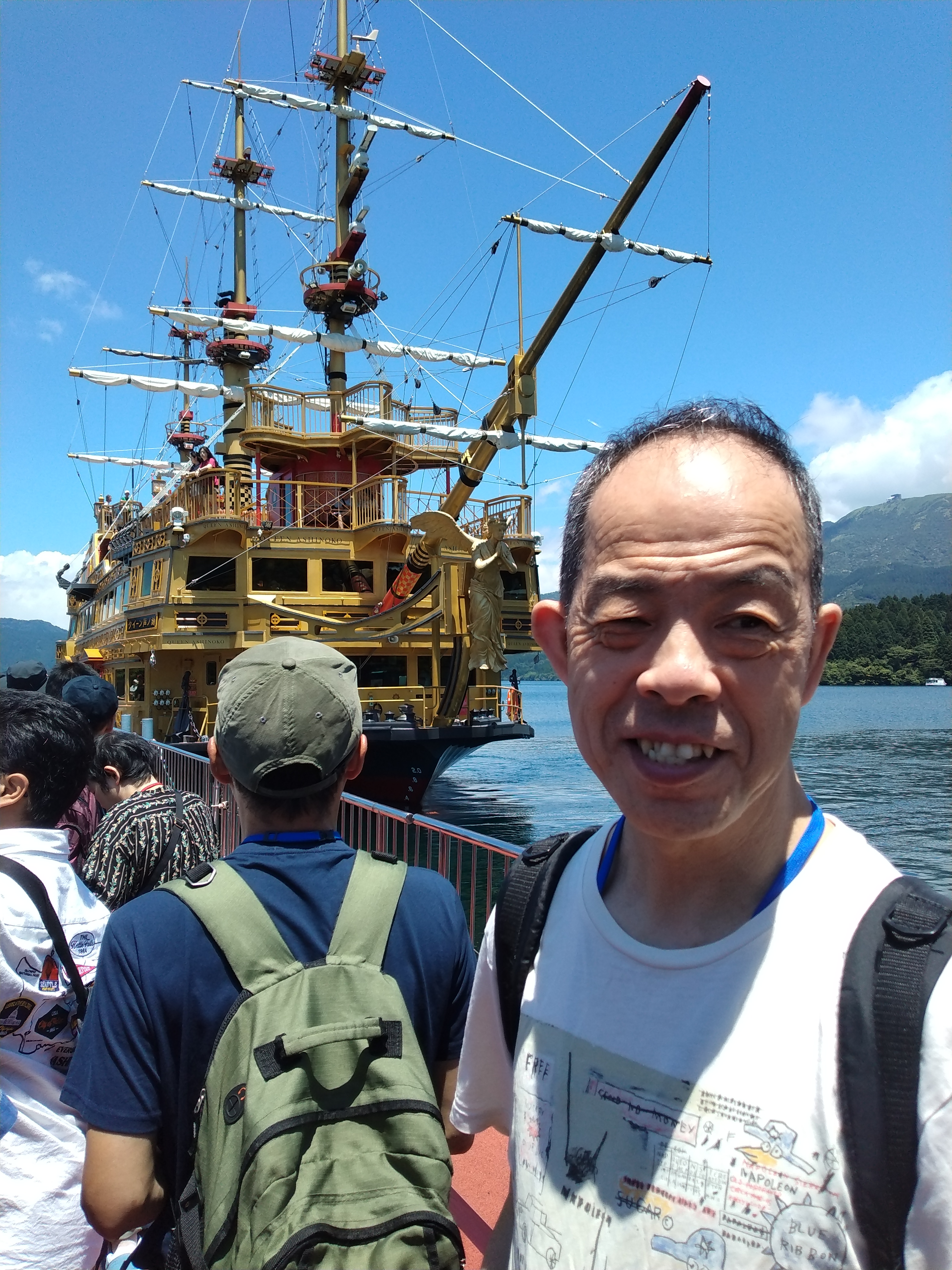 6月26日、27日に一泊旅行に行ってきました。当日は雨の予報もありましたが傘の必要はなく、翌日は天候にも恵まれました。一日目は箱根園を目指します。バスの中ではレクやカラオケを楽しみました。芦ノ湖で海賊船に乗る予定でしたが悪天候のため出航せず箱根園で昼食や買物を楽しみました。昼食は豪華な釜飯御膳でした!予定を変更し、道の駅伊豆ゲートウェイ函南へ。グループに分かれて買物や隣接の「めんたいパーク」で楽しみました。宿は伊豆長岡温泉のニュー八景島です。温泉風呂や宴会を楽しみました。宴会の最後には皆でマツケンサンバで盛り上がりました!朝は快晴で客室から富士山が見えました。朝食バイキングで好きな物を選び、大満足で宿を後にしました。二日目は一日目に乗れなかった海賊船に乗るために芦ノ湖へ。豪華な海賊船でゆったりと芦ノ湖を周りました。風に吹かれてとても気持ちが良かったです。昼食は御殿場高原ビール・グランテーブルへ。ハンバーグステーキとても美味しかったです。笑顔いっぱいで旅行を楽しみました。
