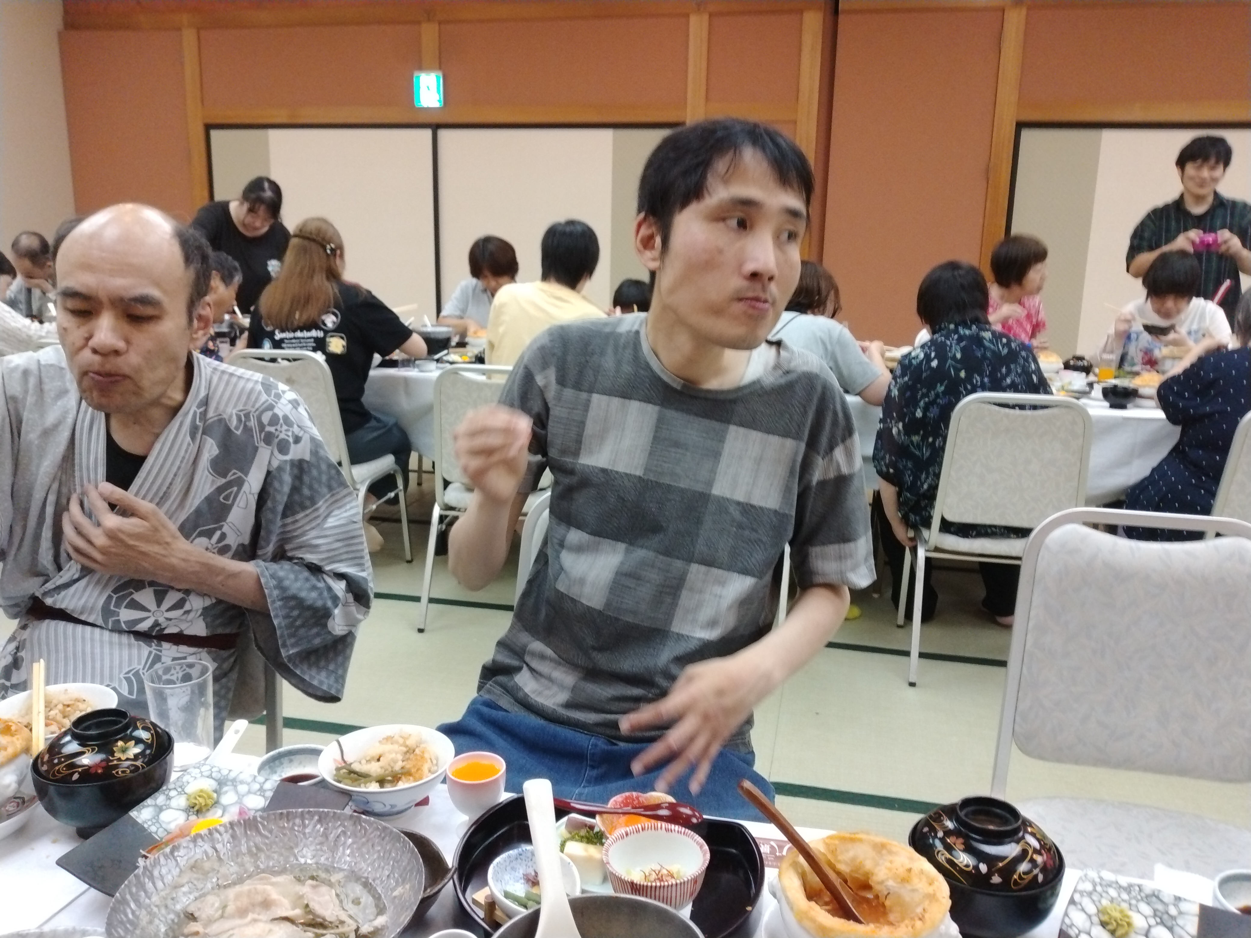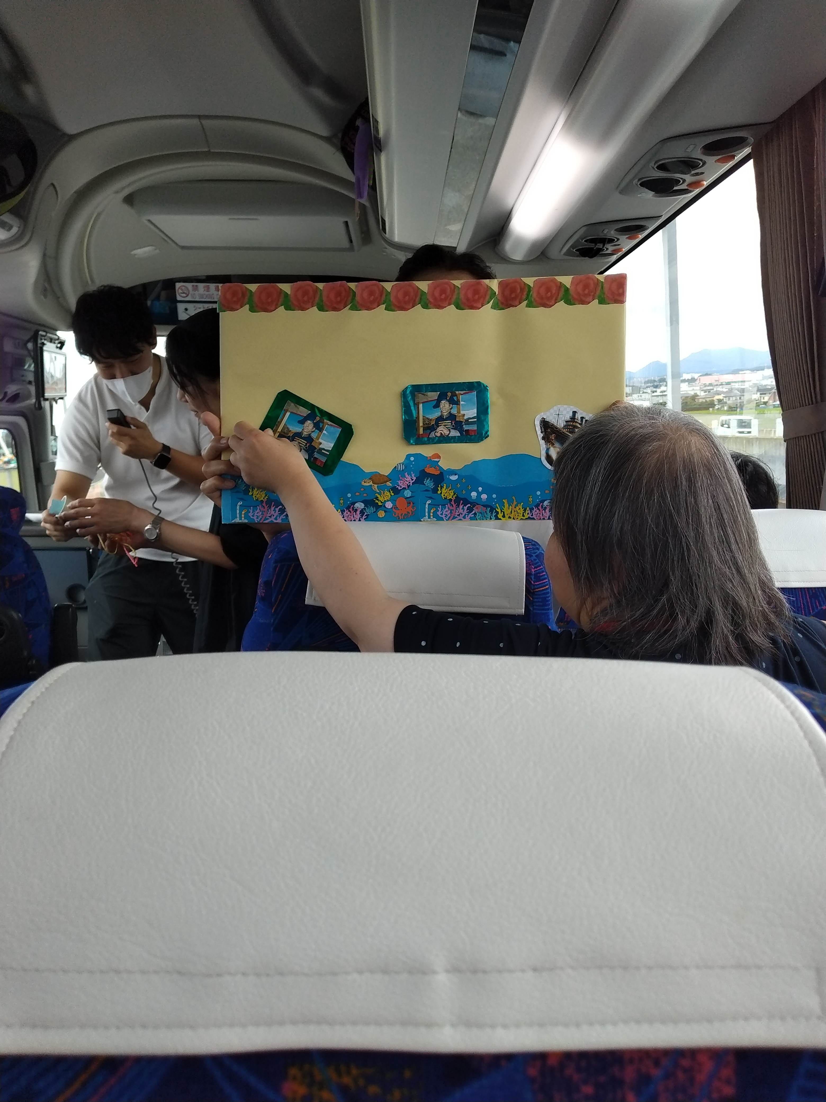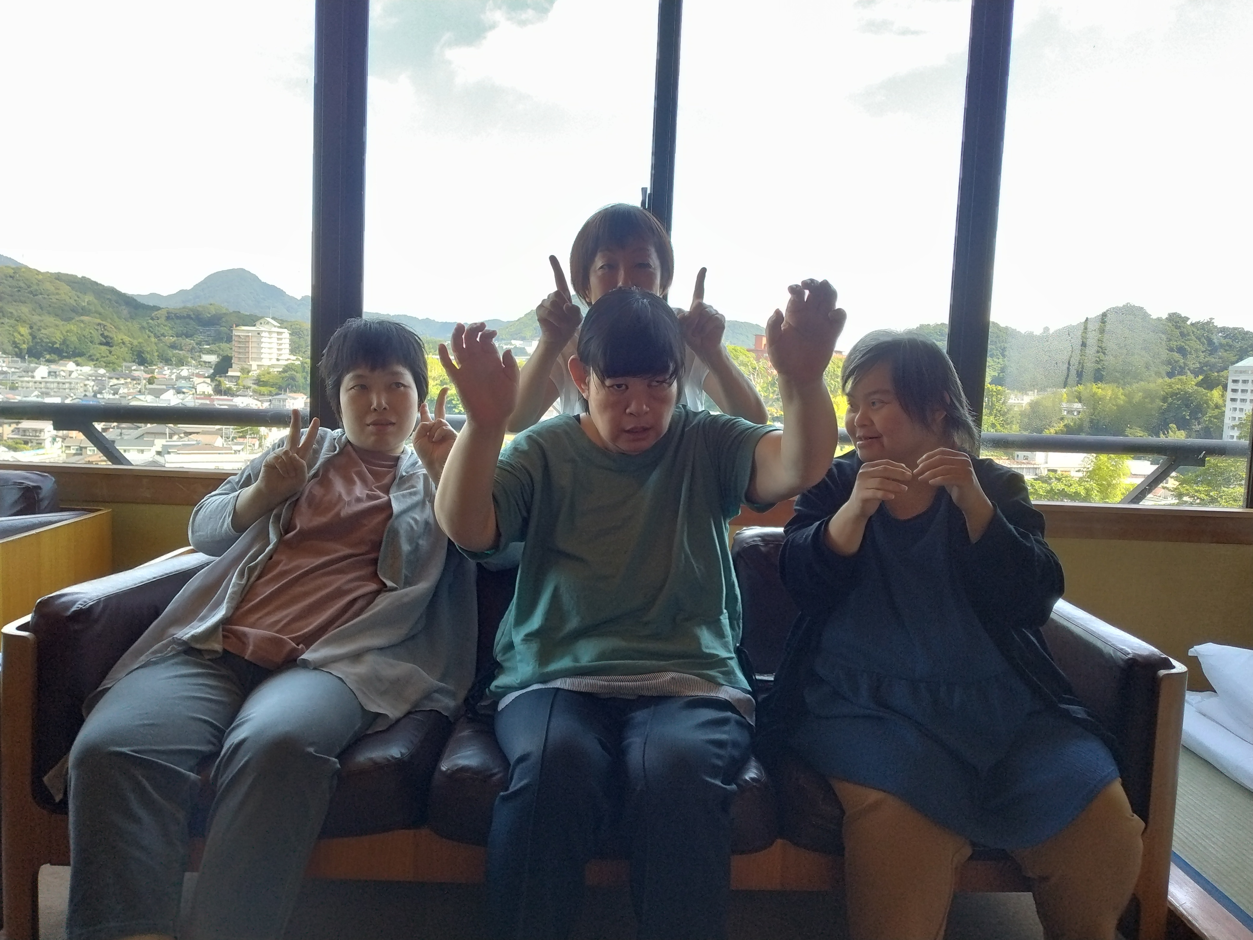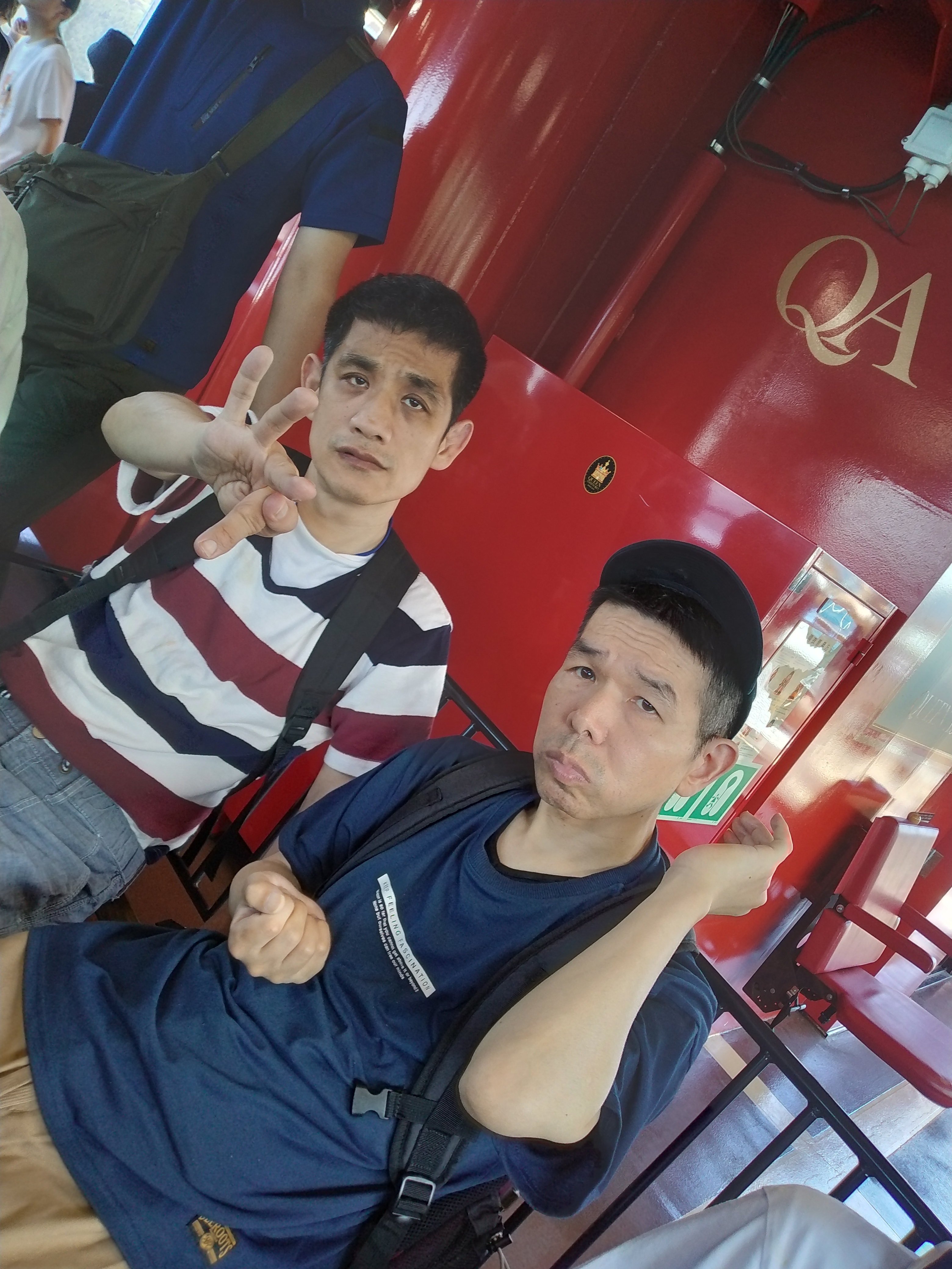 6月26日、27日に一泊旅行に行ってきました。当日は雨の予報もありましたが傘の必要はなく、翌日は天候にも恵まれました。一日目は箱根園を目指します。バスの中ではレクやカラオケを楽しみました。芦ノ湖で海賊船に乗る予定でしたが悪天候のため出航せず箱根園で昼食や買物を楽しみました。昼食は豪華な釜飯御膳でした!予定を変更し、道の駅伊豆ゲートウェイ函南へ。グループに分かれて買物や隣接の「めんたいパーク」で楽しみました。宿は伊豆長岡温泉のニュー八景島です。温泉風呂や宴会を楽しみました。宴会の最後には皆でマツケンサンバで盛り上がりました!朝は快晴で客室から富士山が見えました。朝食バイキングで好きな物を選び、大満足で宿を後にしました。二日目は一日目に乗れなかった海賊船に乗るために芦ノ湖へ。豪華な海賊船でゆったりと芦ノ湖を周りました。風に吹かれてとても気持ちが良かったです。昼食は御殿場高原ビール・グランテーブルへ。ハンバーグステーキとても美味しかったです。笑顔いっぱいで旅行を楽しみました。