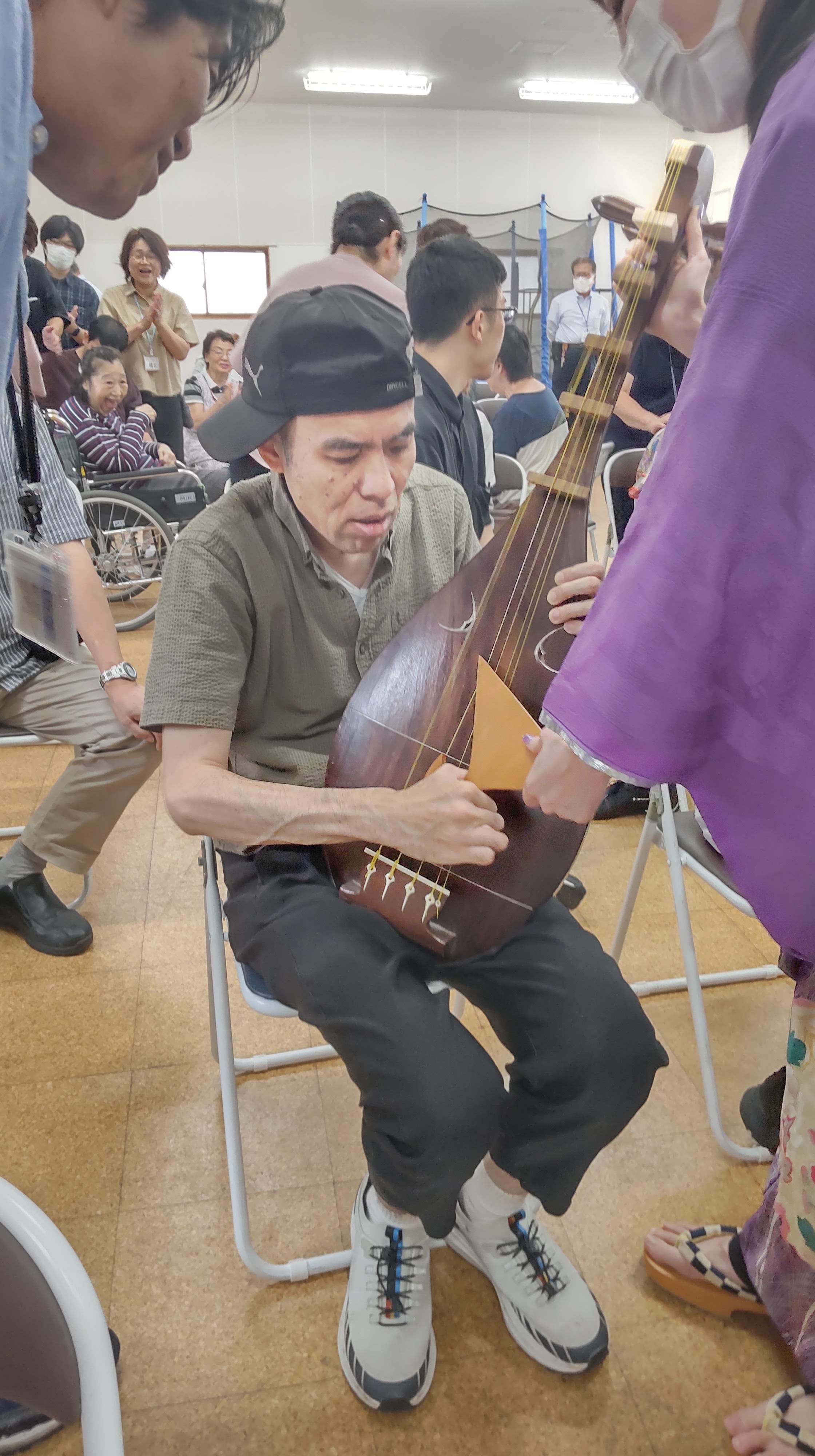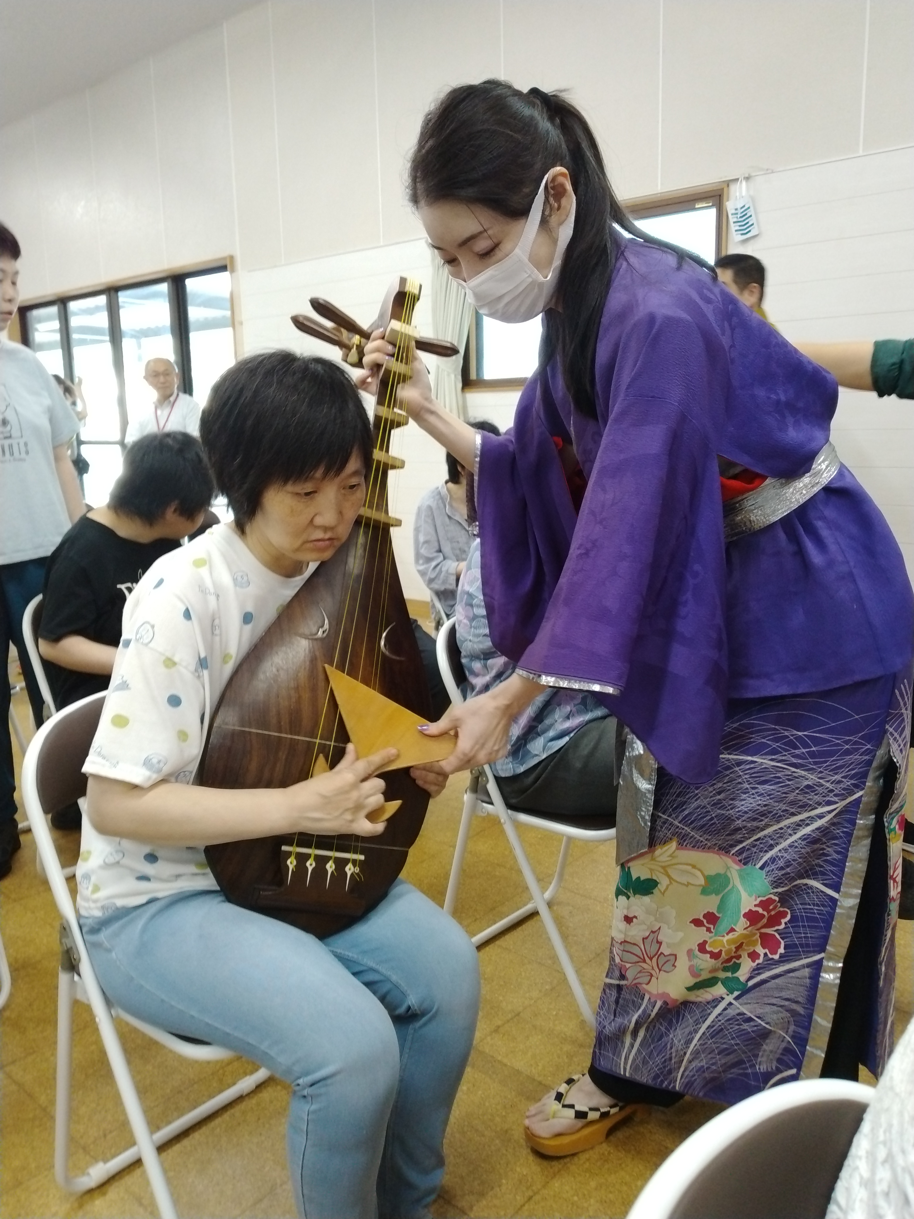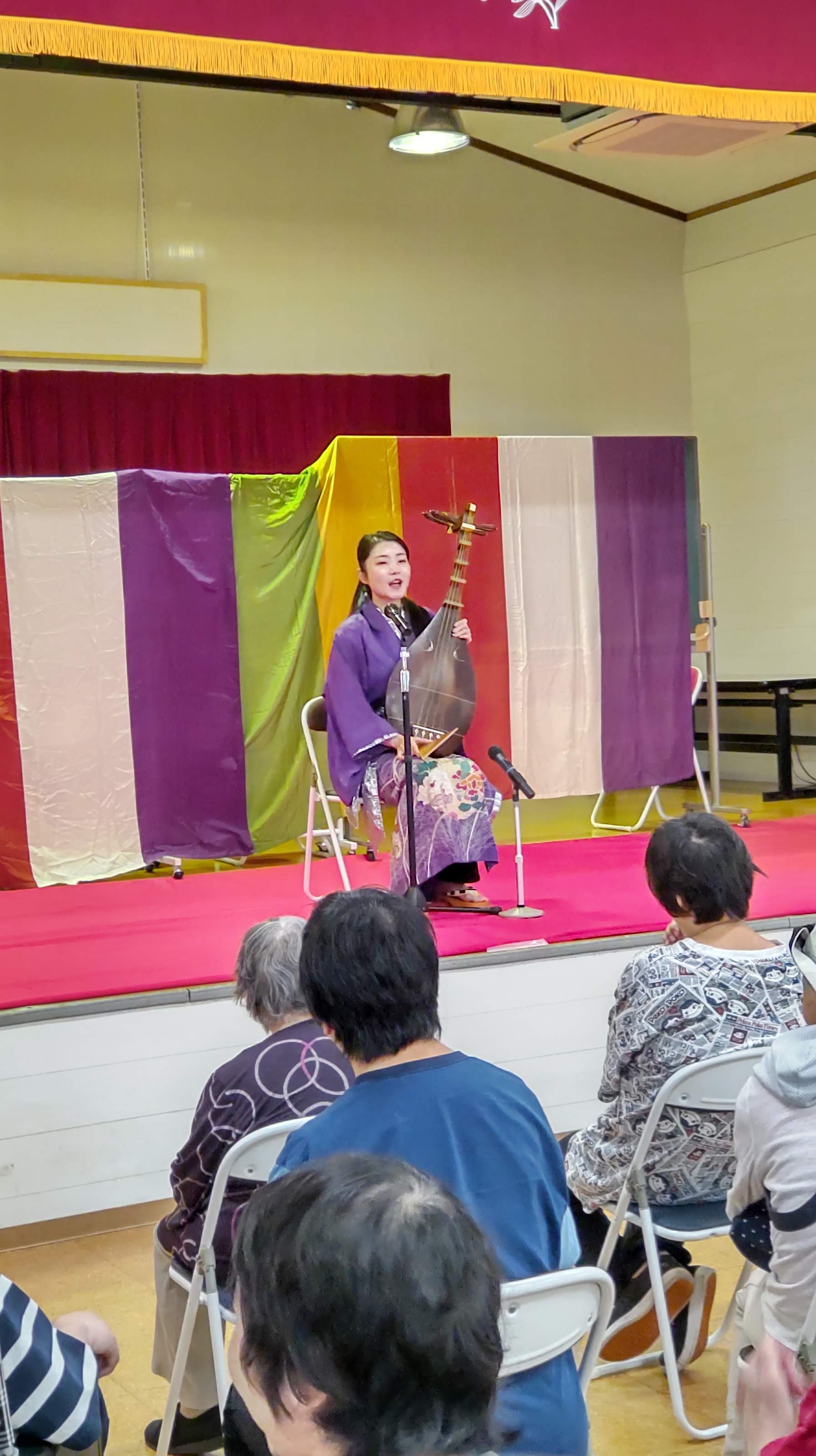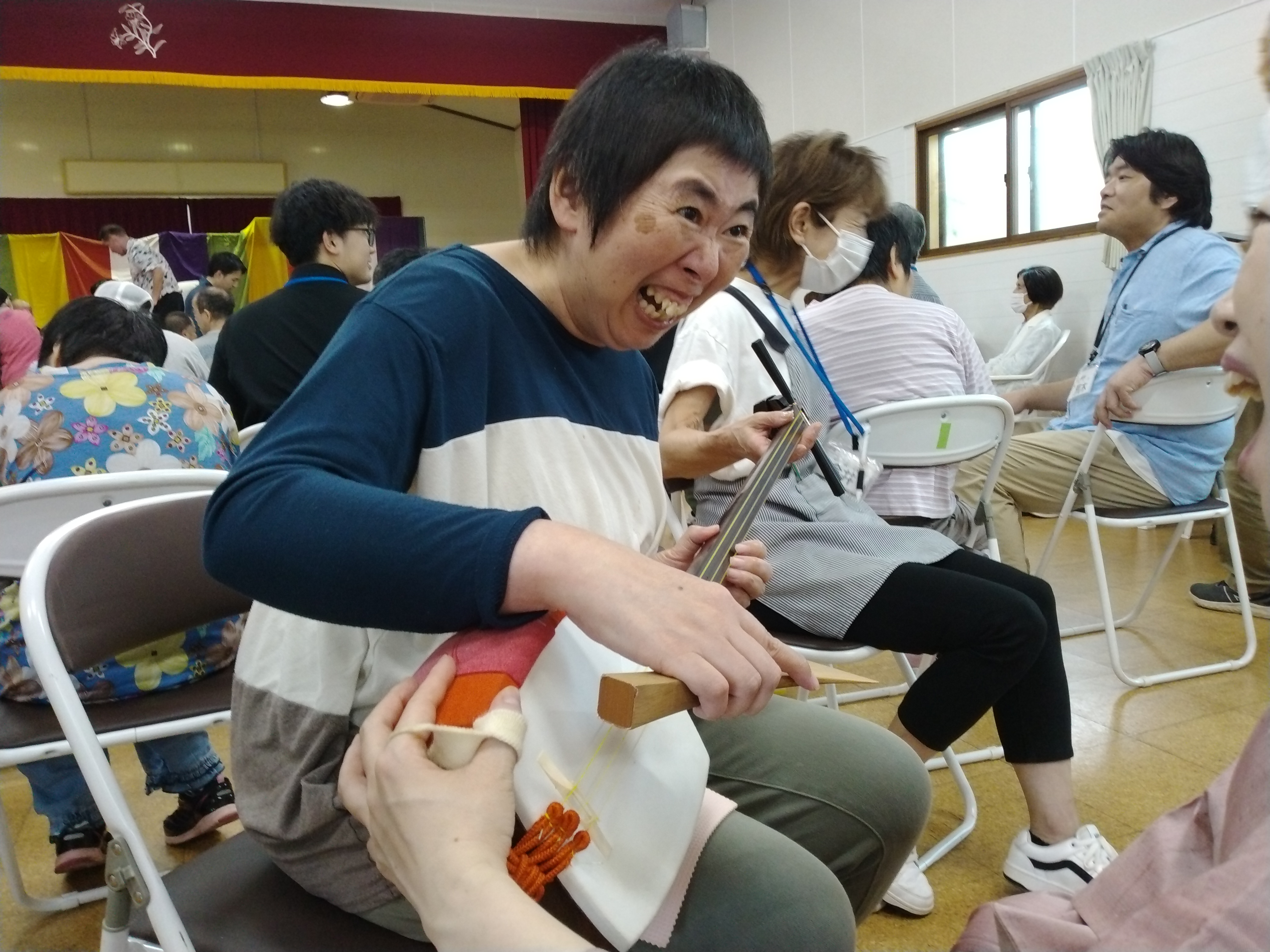 その他・イベント・行事・行事イベント 伝統芸能体験会 投稿者: yamayuri380 投稿日: 2025年10月1日2025年10月8日 9月30日「特定非営利活動法人ACT.JT」さん主催の伝統芸能体験会が開催されました。琵琶・三味線・笛・太鼓の演奏を聴き、実際に楽器に触れることが出来ました。また、狂言では動物の表現などを教えてもらい、みんな興味津々でした。利用者さんだけではなく支援員や近隣の多くの皆さんも参加した大変貴重な体験会となりました。 共有: クリックして X で共有 (新しいウィンドウで開きます) X Facebook で共有するにはクリックしてください (新しいウィンドウで開きます) Facebook いいね 読み込み中… 関連