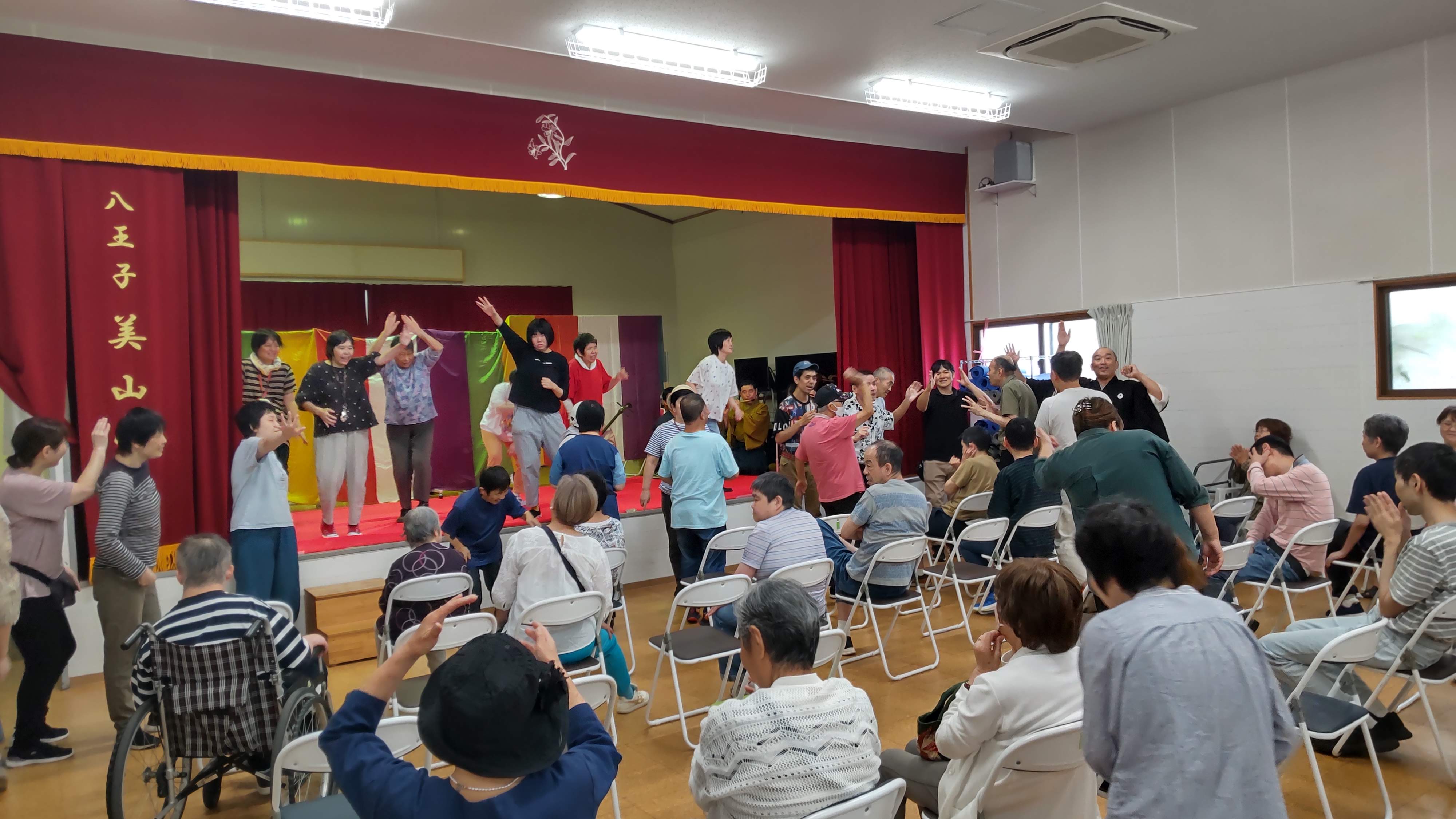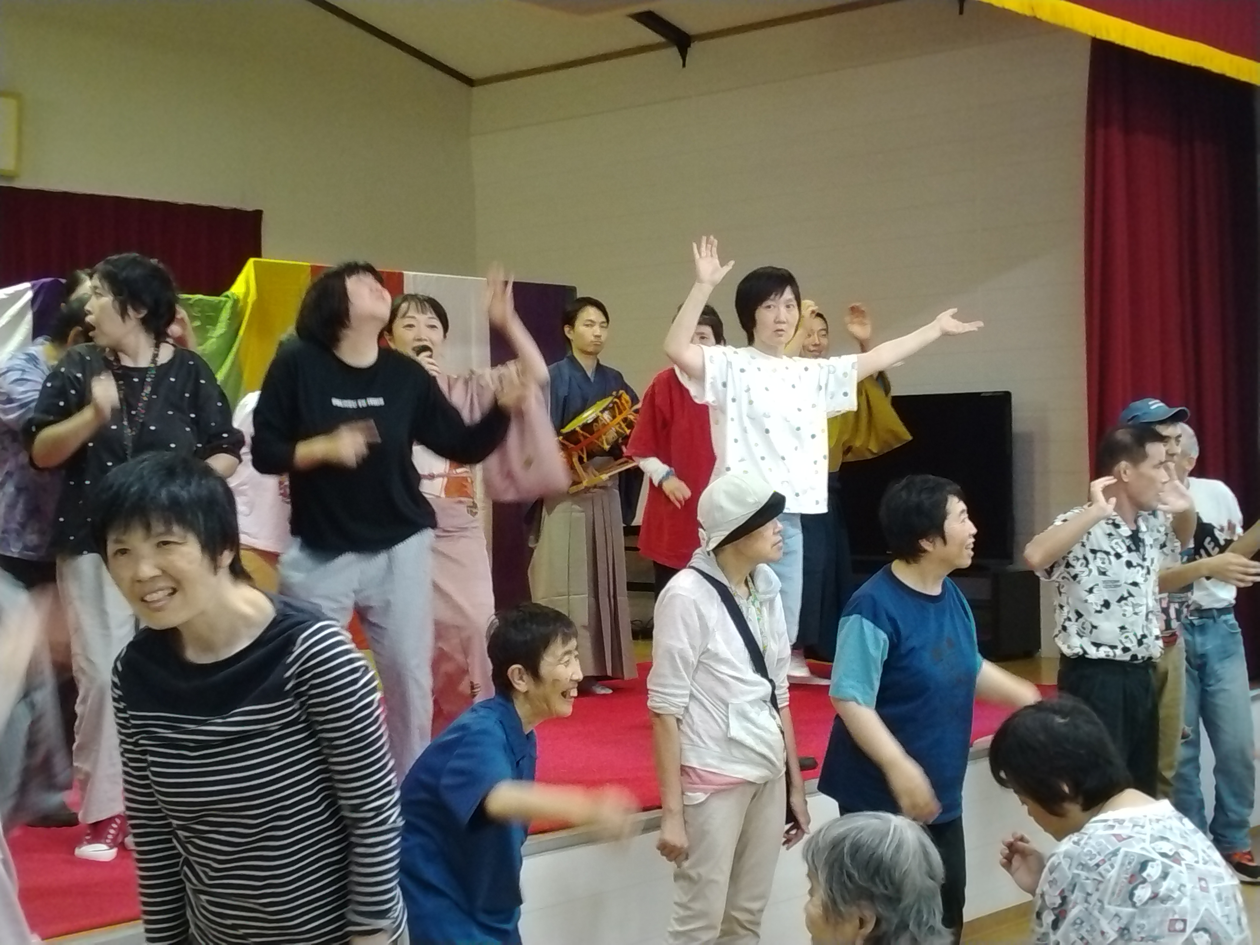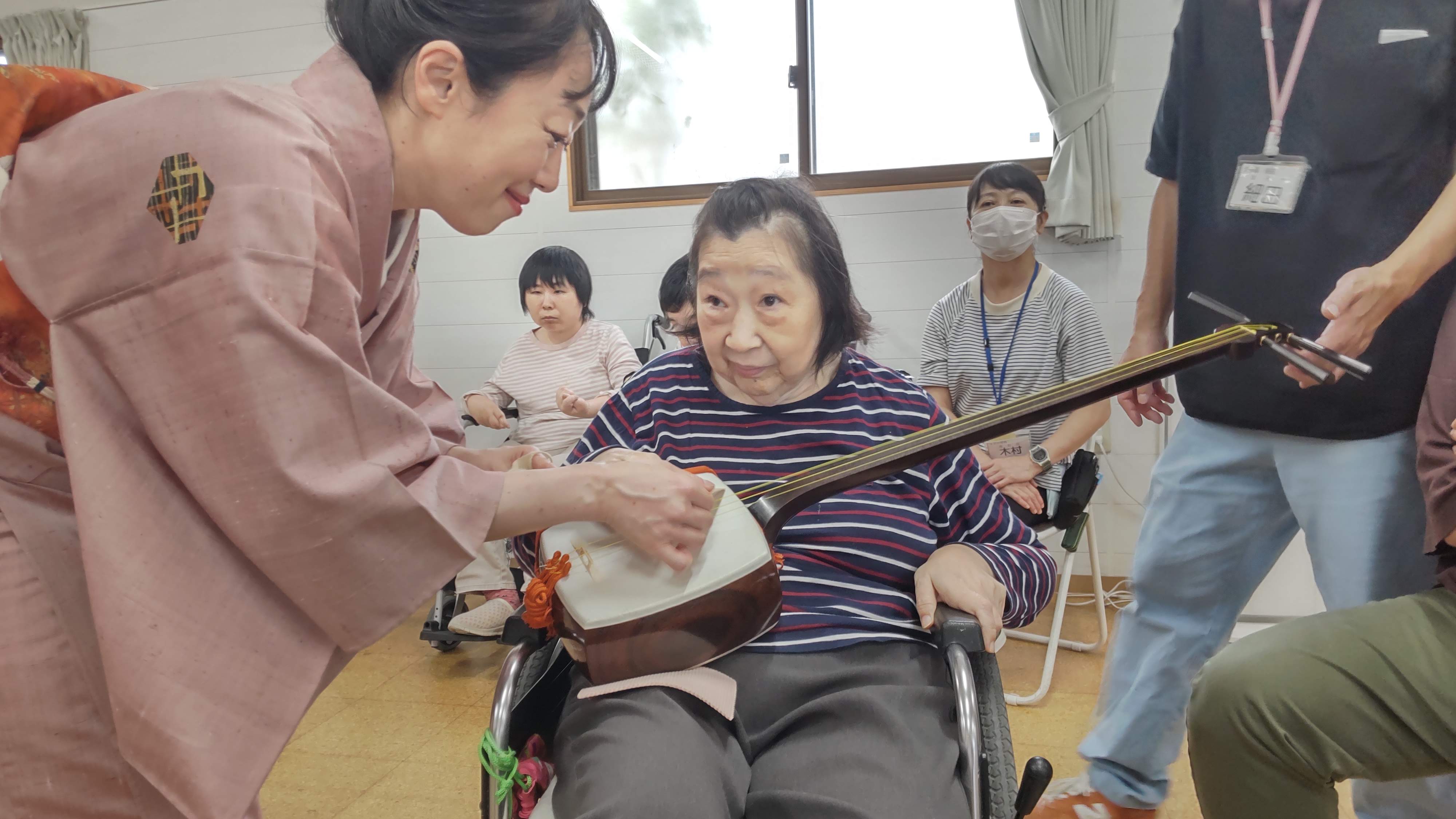 その他・イベント・行事・行事イベント 伝統芸能体験会 投稿者: yamayuri380 投稿日: 2025年10月1日2025年10月8日 9月30日「特定非営利活動法人ACT.JT」さん主催の伝統芸能体験会が開催されました。琵琶・三味線・笛・太鼓の演奏を聴き、実際に楽器に触れることが出来ました。また、狂言では動物の表現などを教えてもらい、みんな興味津々でした。利用者さんだけではなく支援員や近隣の多くの皆さんも参加した大変貴重な体験会となりました。 共有: クリックして X で共有 (新しいウィンドウで開きます) X Facebook で共有するにはクリックしてください (新しいウィンドウで開きます) Facebook いいね 読み込み中… 関連