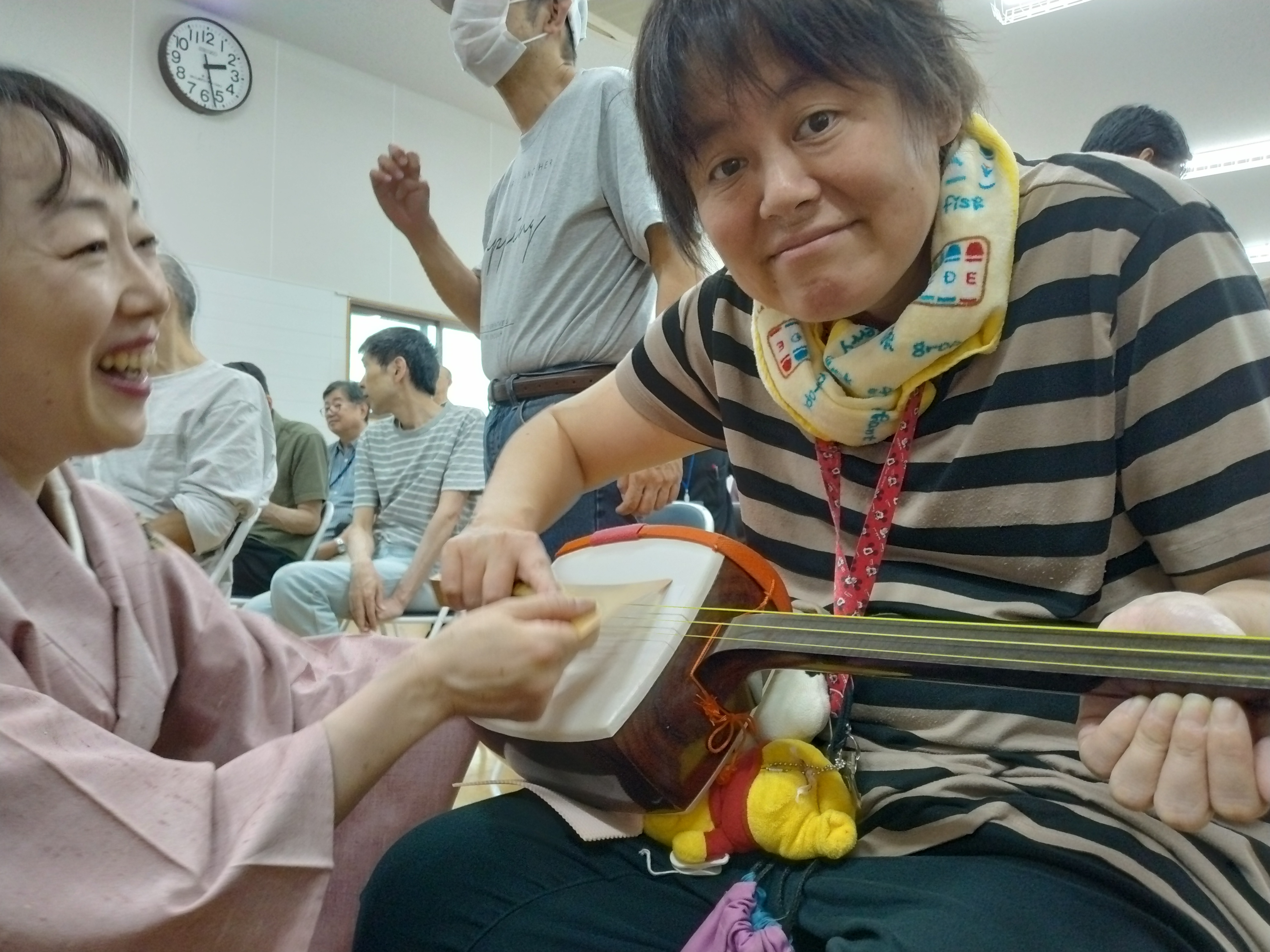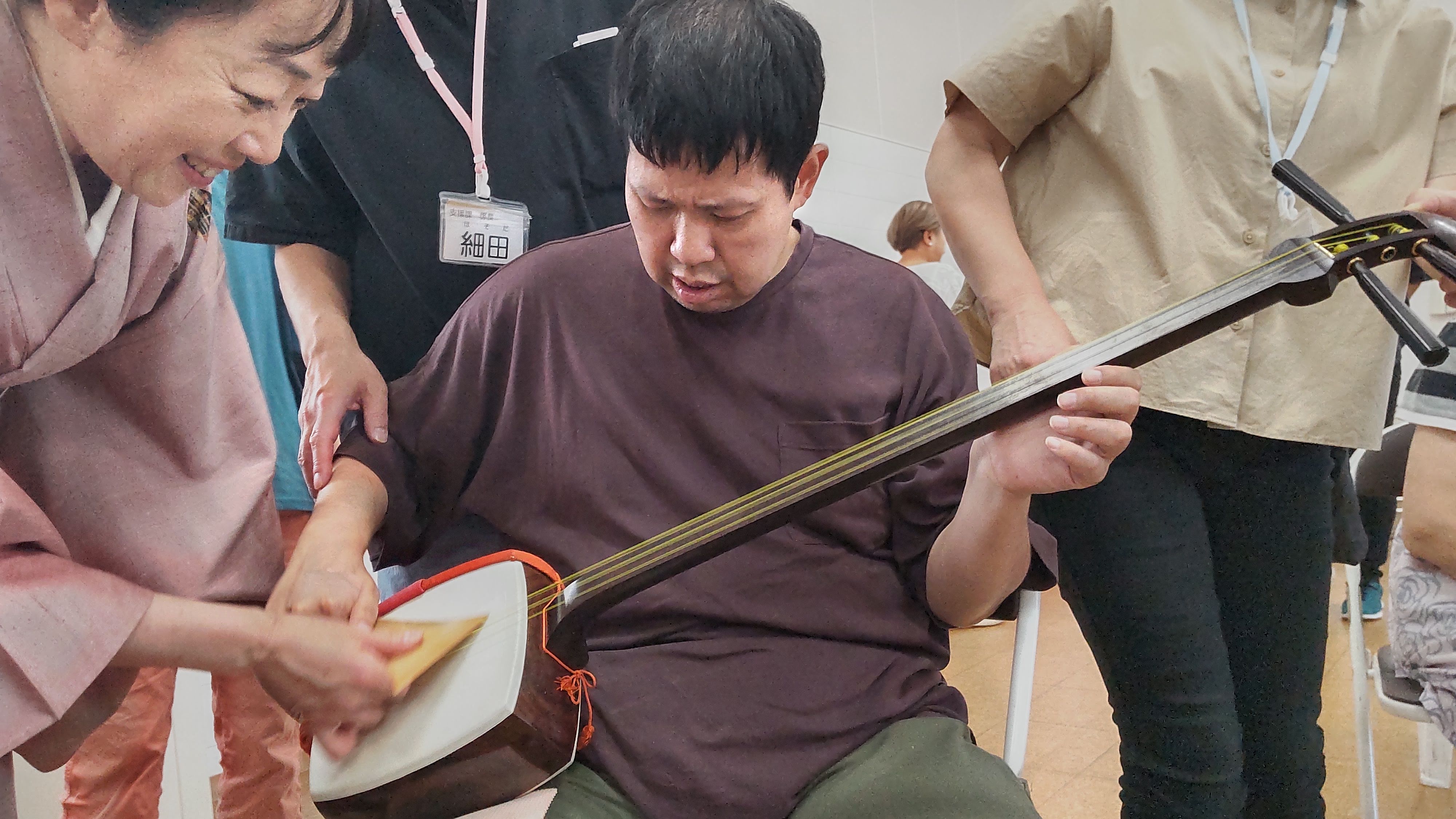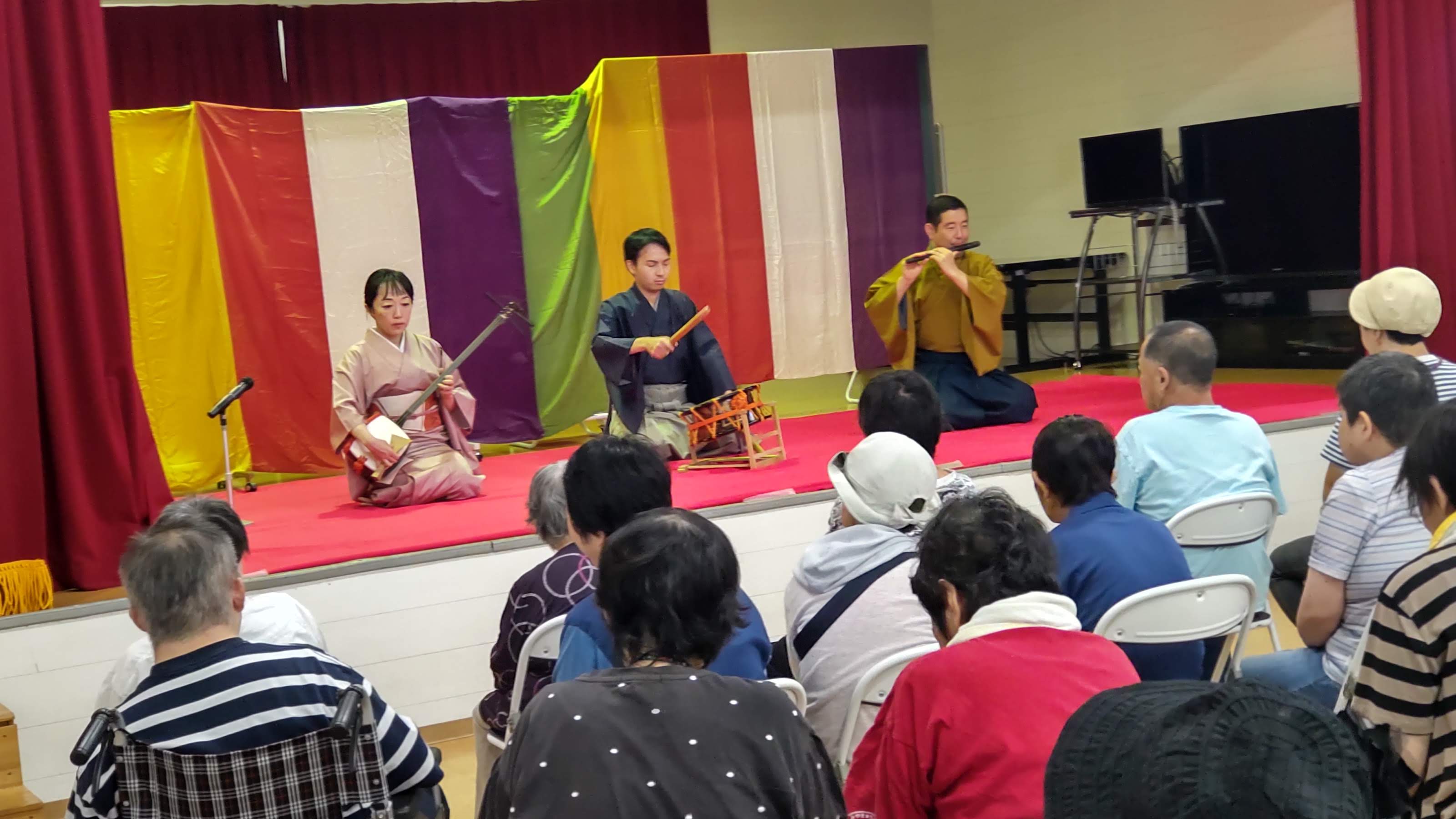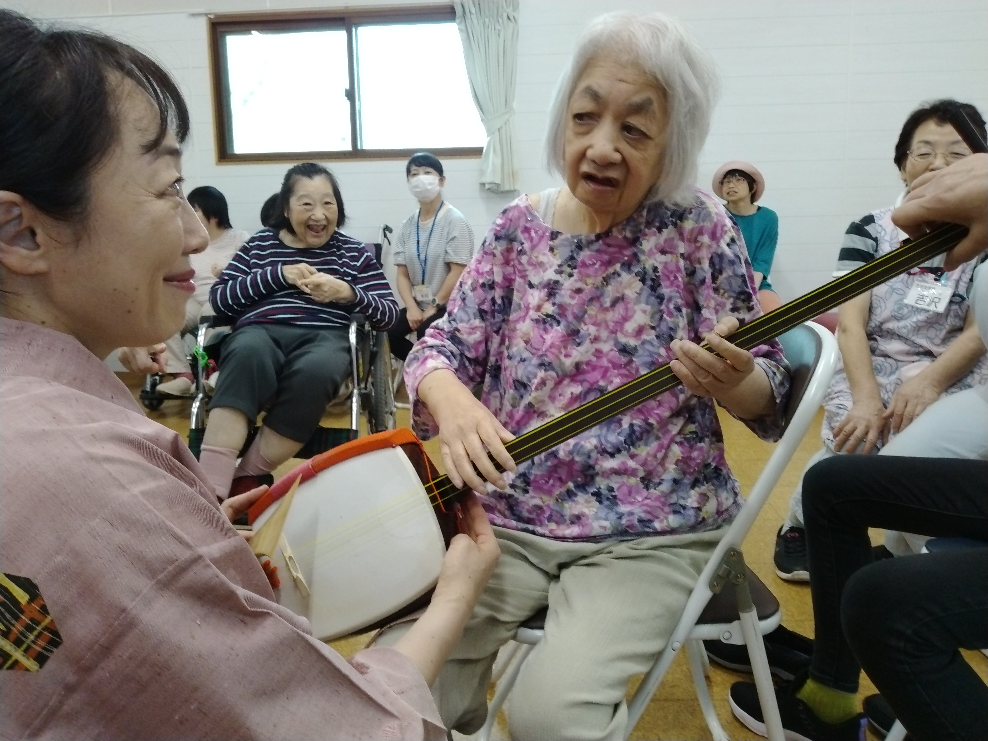 その他・イベント・行事・行事イベント 伝統芸能体験会 投稿者: yamayuri380 投稿日: 2025年10月1日2025年10月8日 9月30日「特定非営利活動法人ACT.JT」さん主催の伝統芸能体験会が開催されました。琵琶・三味線・笛・太鼓の演奏を聴き、実際に楽器に触れることが出来ました。また、狂言では動物の表現などを教えてもらい、みんな興味津々でした。利用者さんだけではなく支援員や近隣の多くの皆さんも参加した大変貴重な体験会となりました。 共有: クリックして X で共有 (新しいウィンドウで開きます) X Facebook で共有するにはクリックしてください (新しいウィンドウで開きます) Facebook いいね 読み込み中… 関連