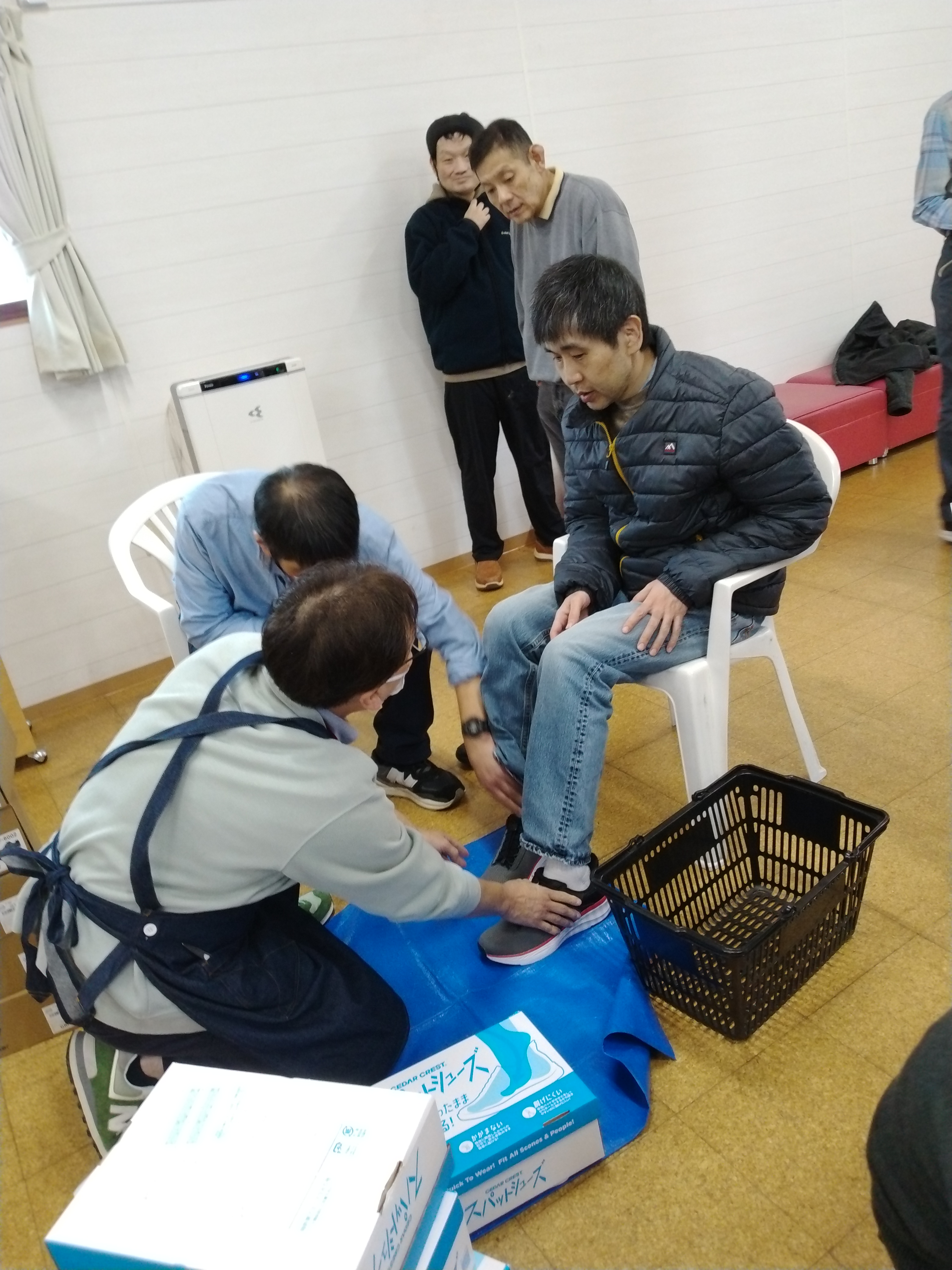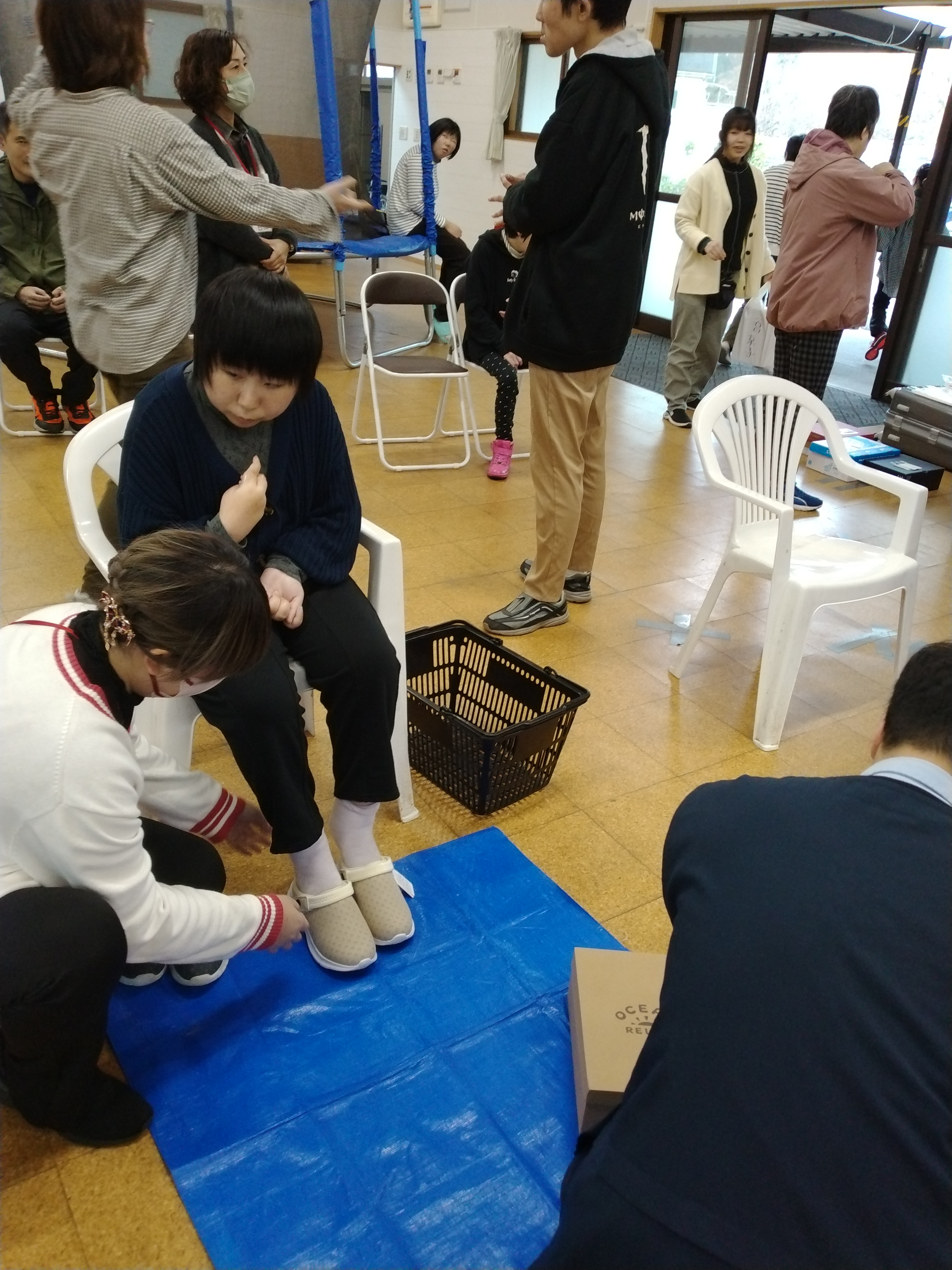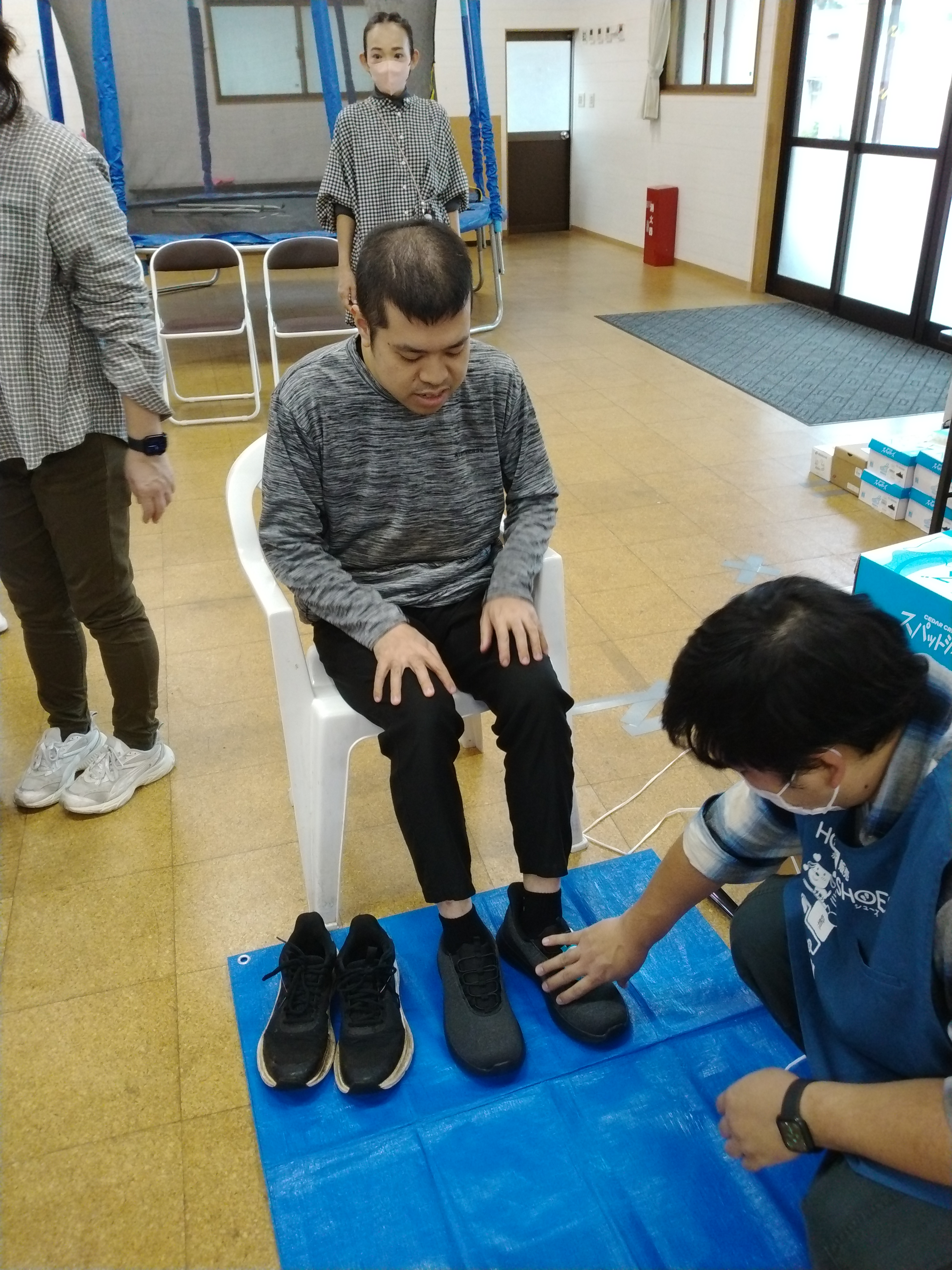 その他・行事 靴の訪問販売♬ 投稿者: yamayuri380 投稿日: 2025年12月11日2025年12月11日 11月27日 東京靴流通センターさんの靴の訪問販売が開かれました。 事前に足のサイズを計測頂き、訪問販売当日、利用者それぞれに合う靴をフィッティングしました。 靴の訪問販売は初めての試みでしたが、専門の方に選定してもらい、職員と一緒に賑やかな雰囲気でした。 実際に履いて少し歩いてみたり、新しい靴を楽しみにしている様子が見られました♪ 今後も外部のお店などにご協力いただきながら、利用者の楽しみを増やしていきたいと思います。 共有: クリックして X で共有 (新しいウィンドウで開きます) X Facebook で共有するにはクリックしてください (新しいウィンドウで開きます) Facebook いいね 読み込み中… 関連