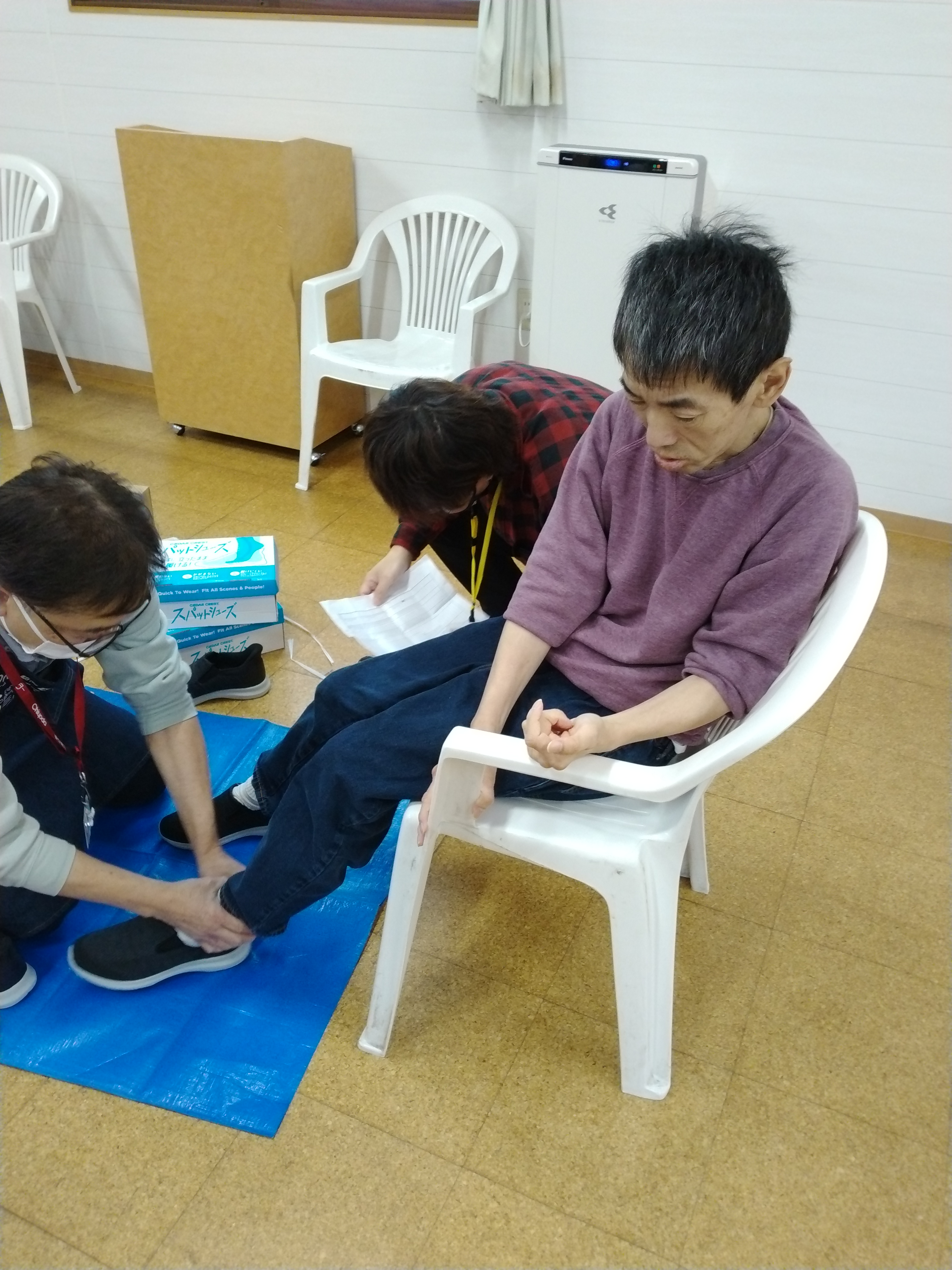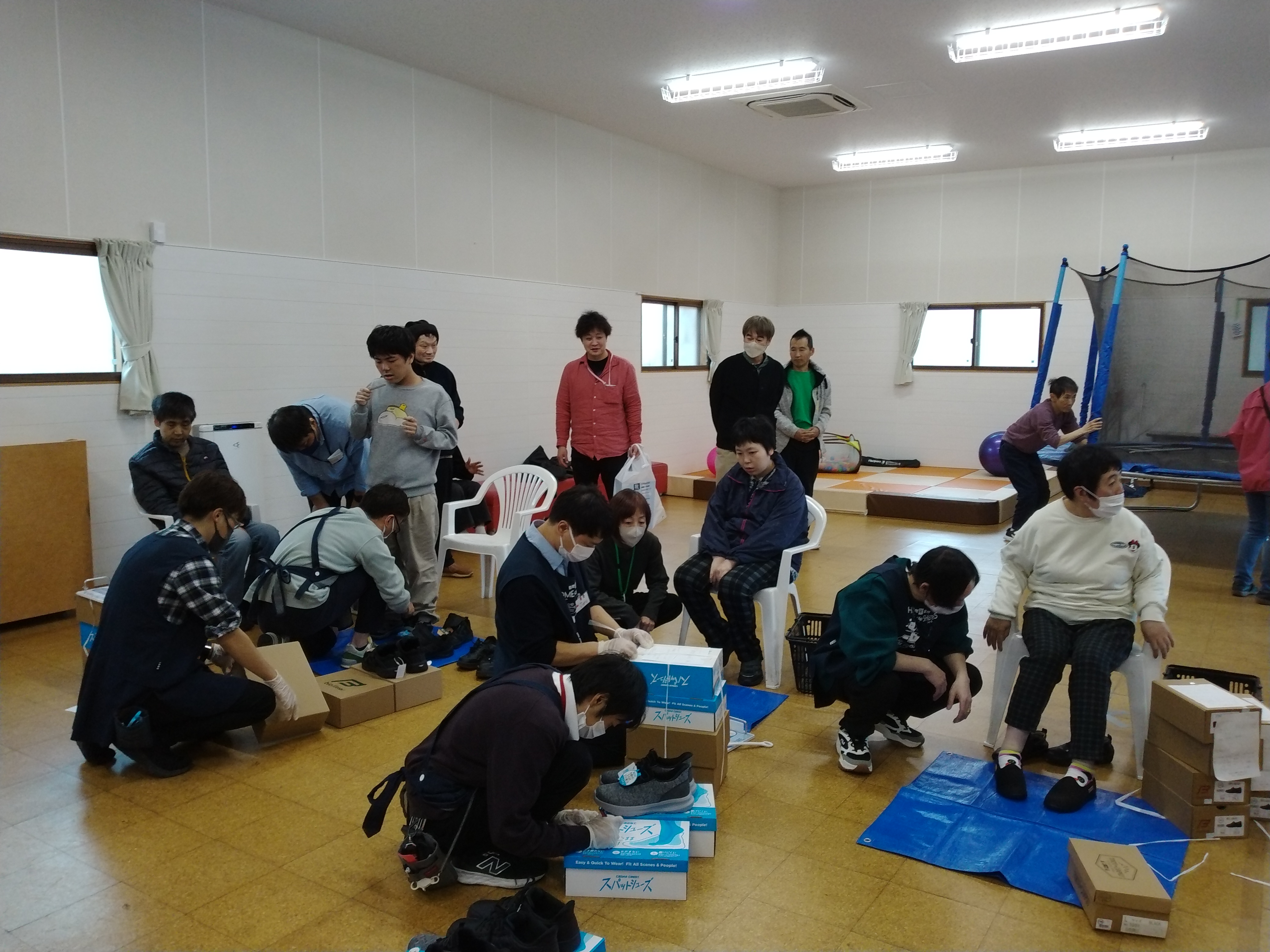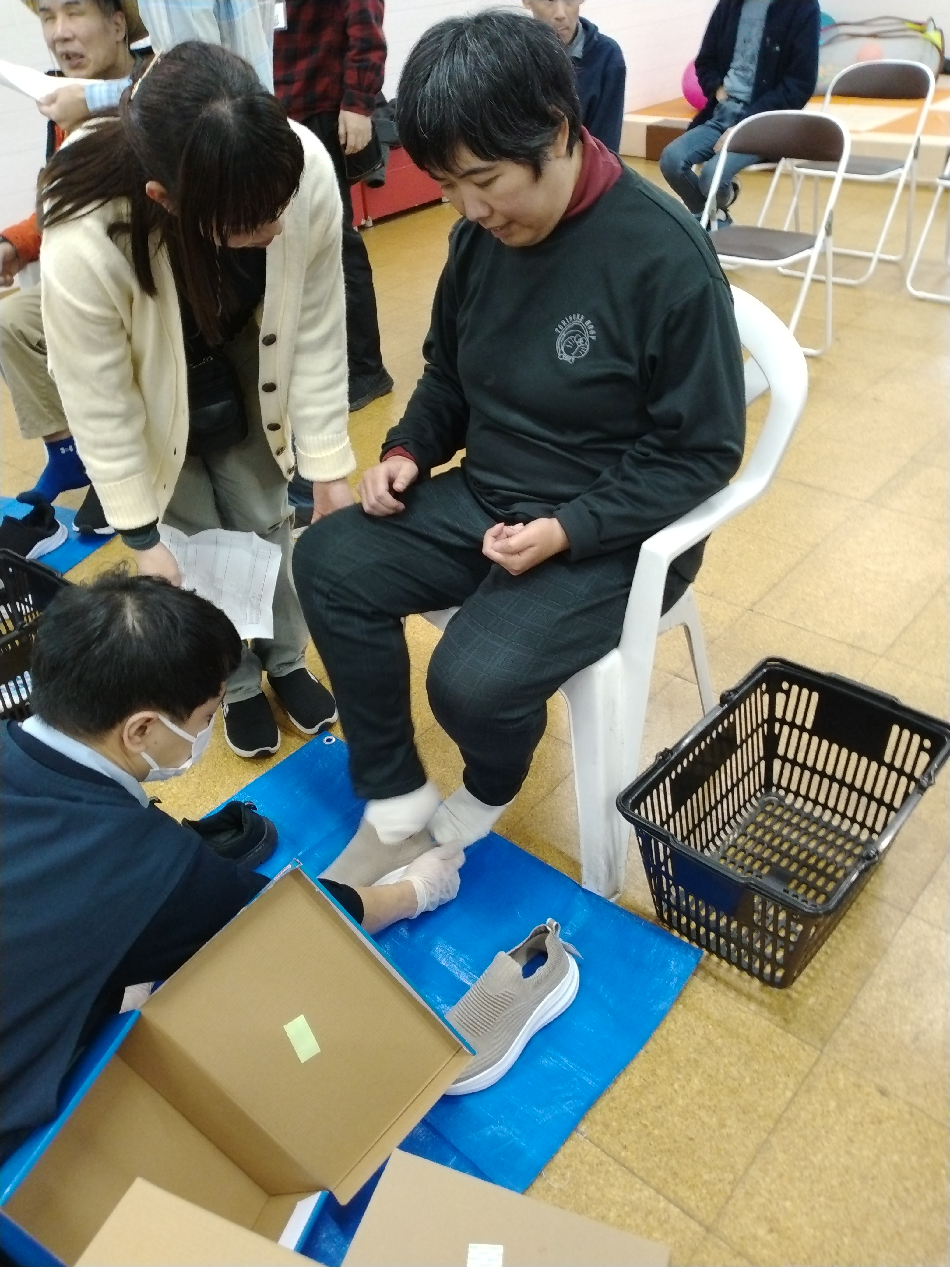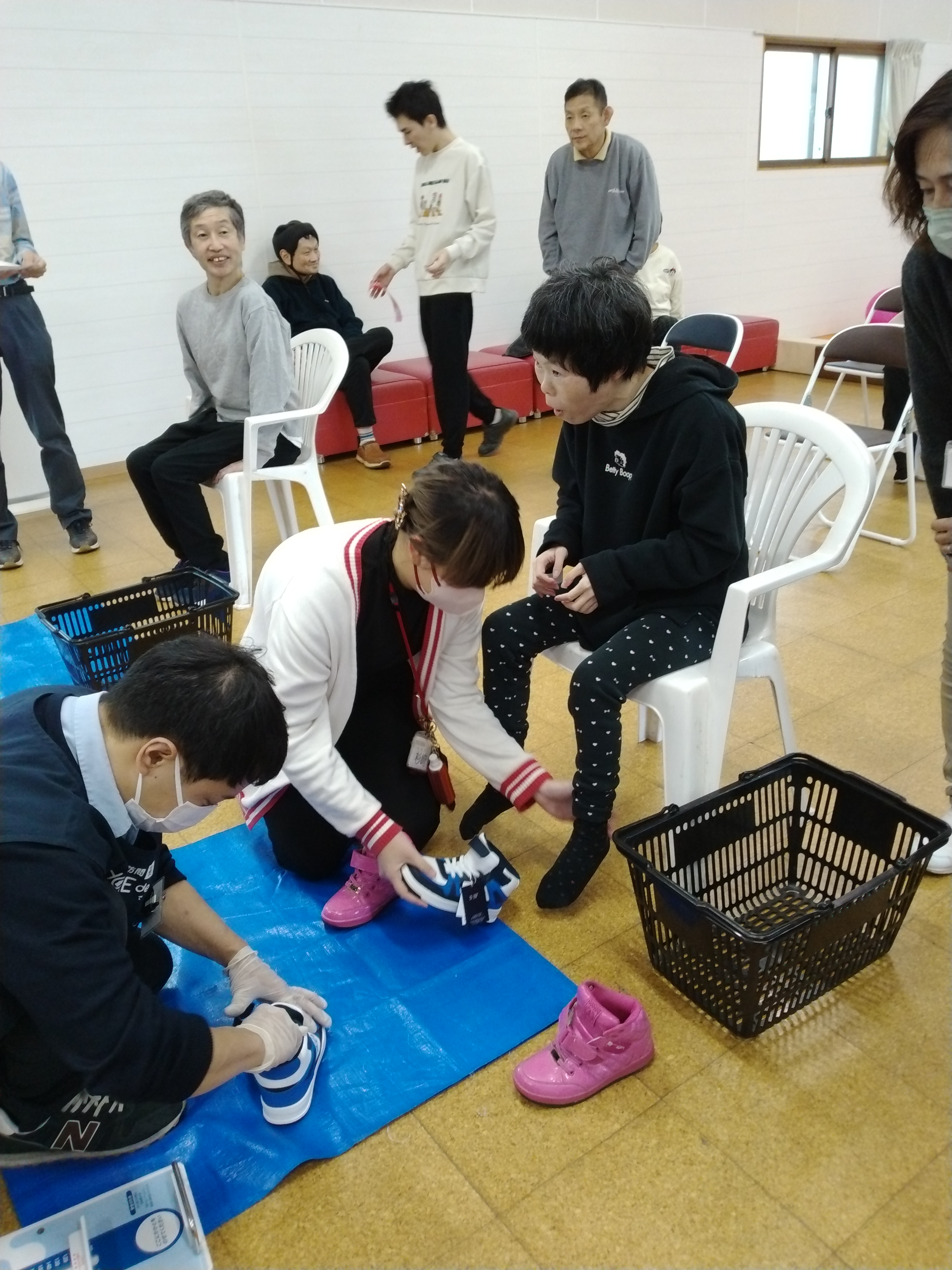 その他・行事 靴の訪問販売♬ 投稿者: yamayuri380 投稿日: 2025年12月11日2025年12月11日 11月27日 東京靴流通センターさんの靴の訪問販売が開かれました。 事前に足のサイズを計測頂き、訪問販売当日、利用者それぞれに合う靴をフィッティングしました。 靴の訪問販売は初めての試みでしたが、専門の方に選定してもらい、職員と一緒に賑やかな雰囲気でした。 実際に履いて少し歩いてみたり、新しい靴を楽しみにしている様子が見られました♪ 今後も外部のお店などにご協力いただきながら、利用者の楽しみを増やしていきたいと思います。 共有: クリックして X で共有 (新しいウィンドウで開きます) X Facebook で共有するにはクリックしてください (新しいウィンドウで開きます) Facebook いいね 読み込み中… 関連
